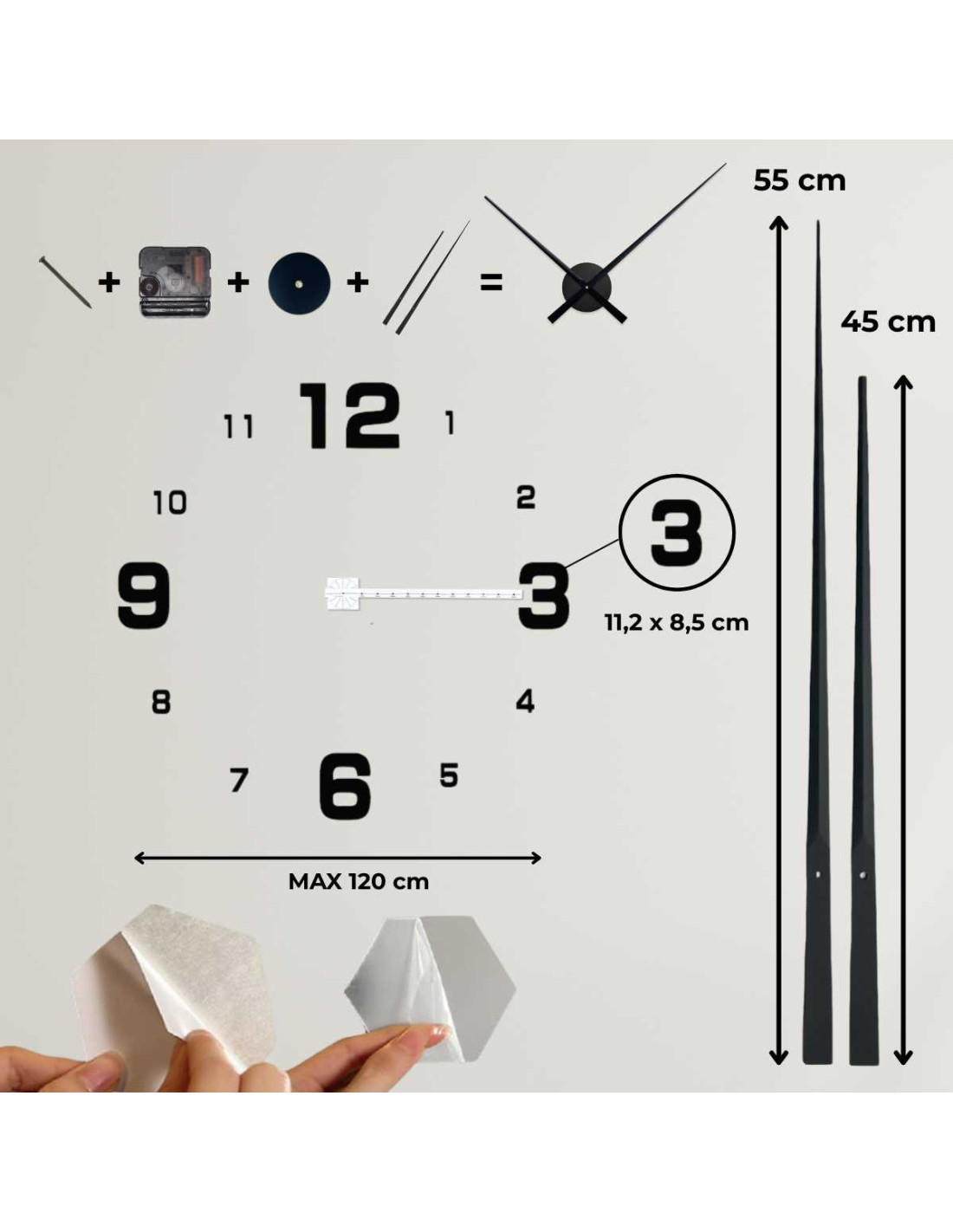 Discover a stylish wall clock with an adjustable diameter of up to 130 cm, which will stand out as a striking element in the living room, bedroom, office or entrance hall.