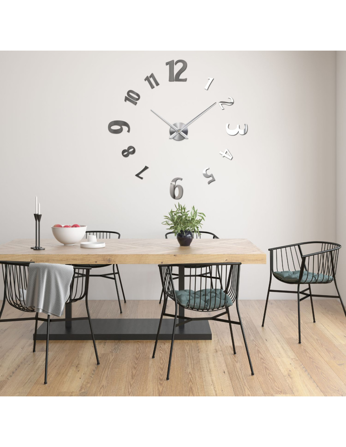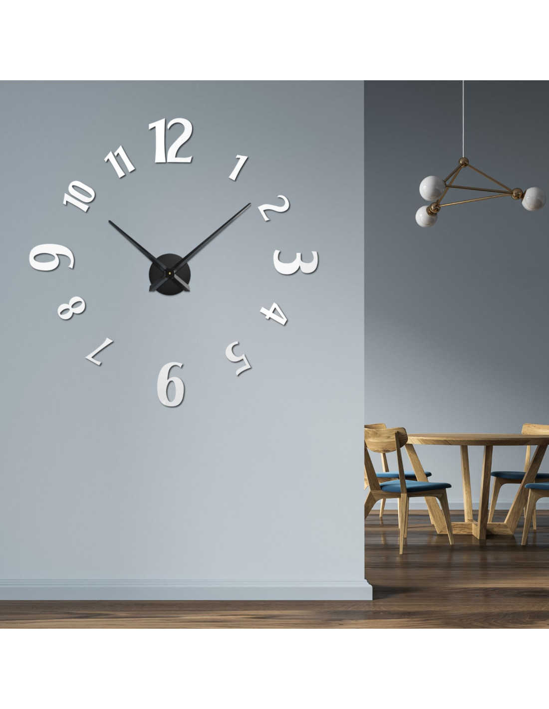 Large adhesive clocks with bold numbers and a metal center are the ideal solution for any modern interior.
