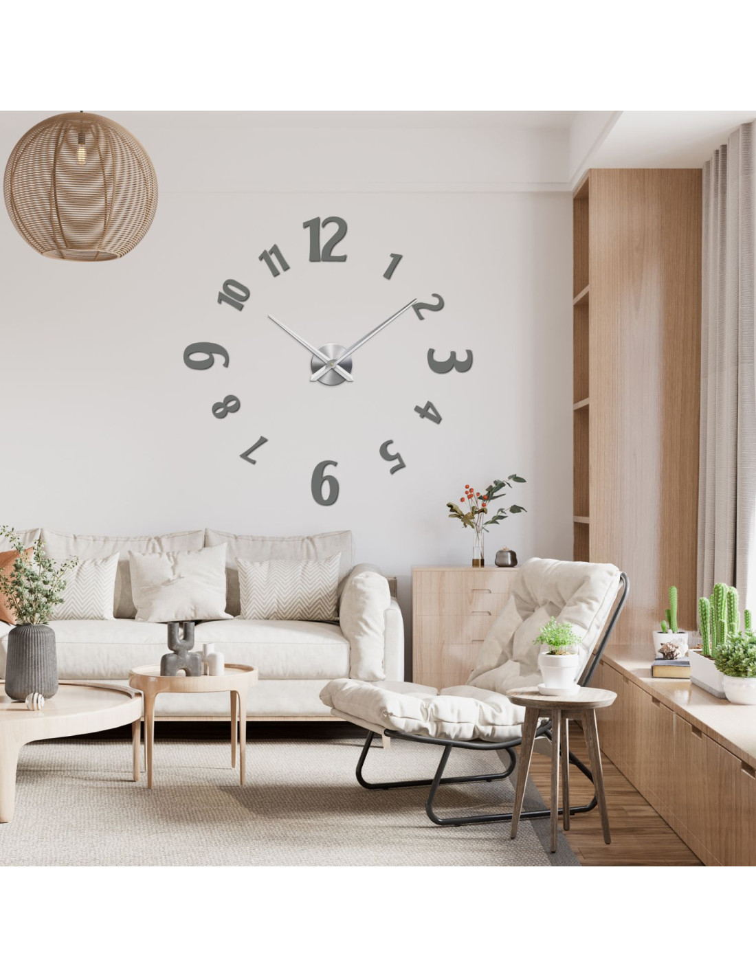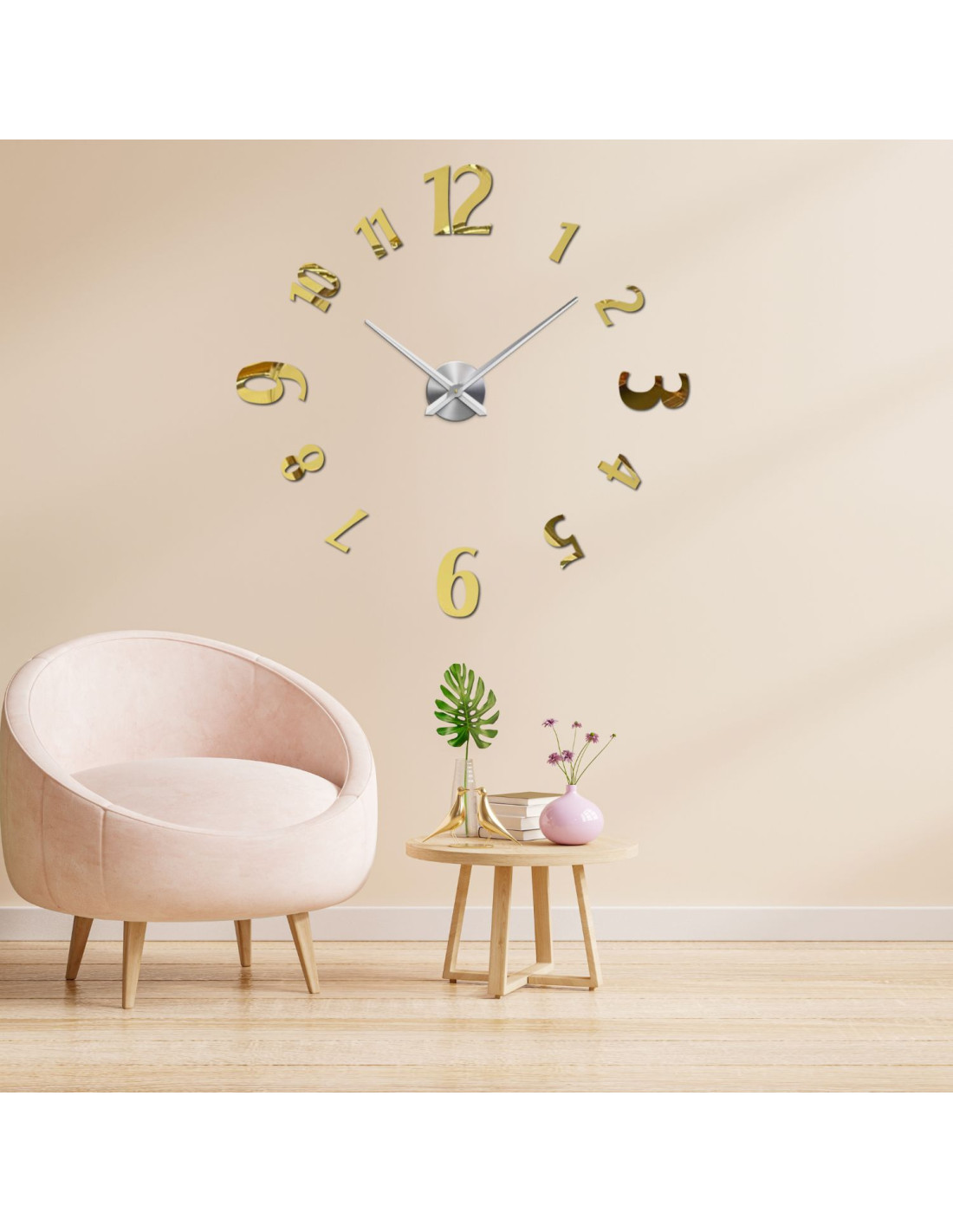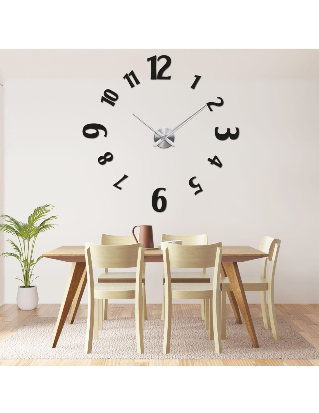 Large 3D adhesive wall clock - modern design for any interior.