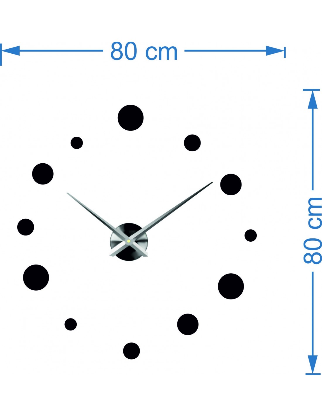 Sticker dimensions: 800 x 800 mm, can be enlarged up to 1300 x 1300 mm. Clockwork dimensions: 100 x 100 mm. Hand length: 30 - 40 cm.
