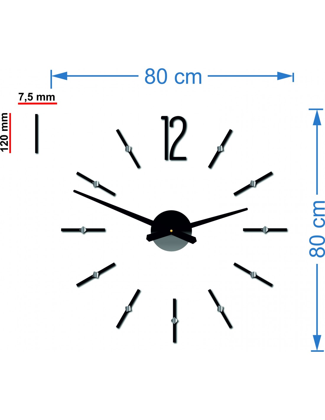 * Dimensions of the clockwork: 100 x 100 mm. Length of the hands: 30 - 40 cm.
