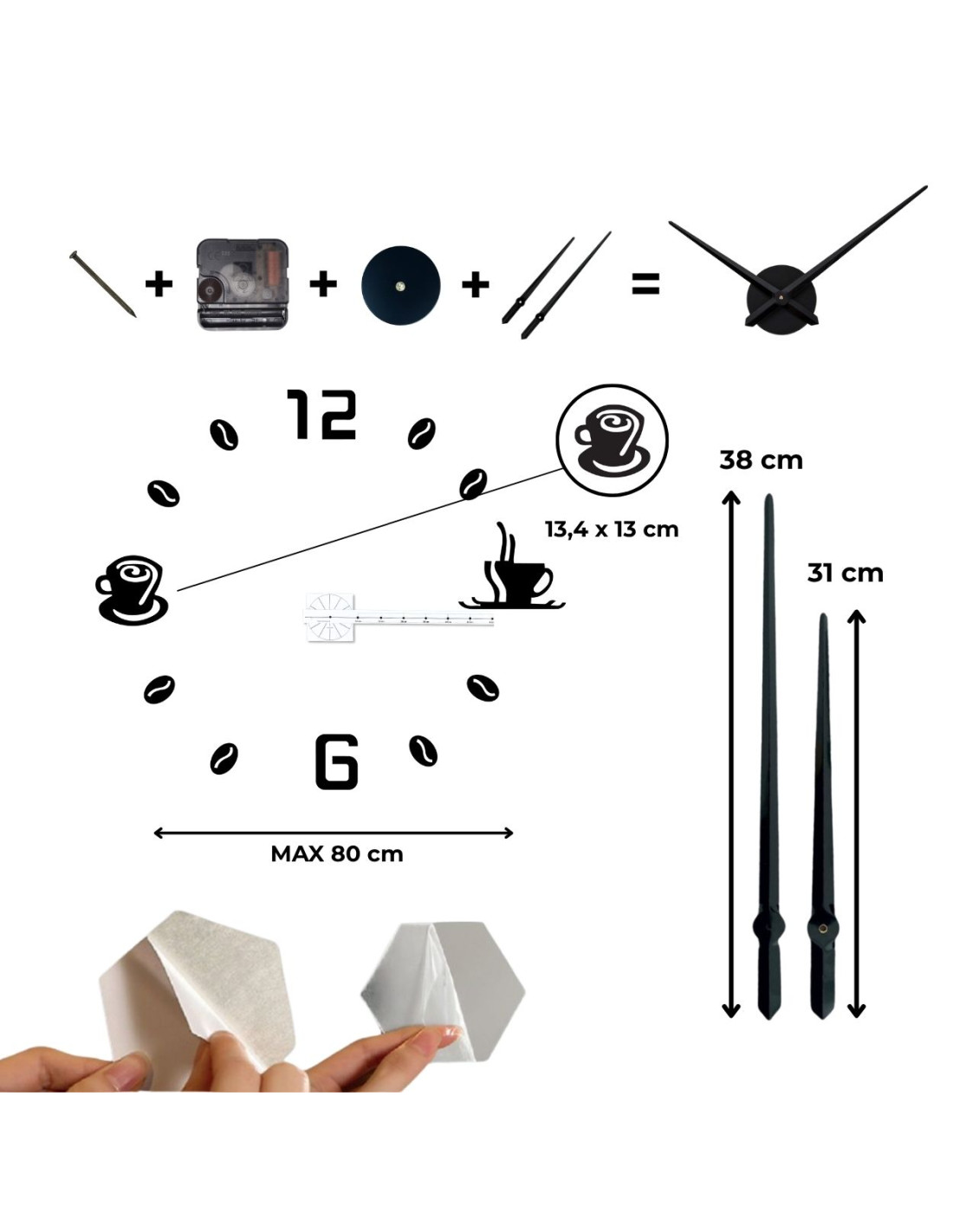 The clock is adhesive, so you can easily adjust it to the size of your wall - you can make it smaller or up to 130 cm.