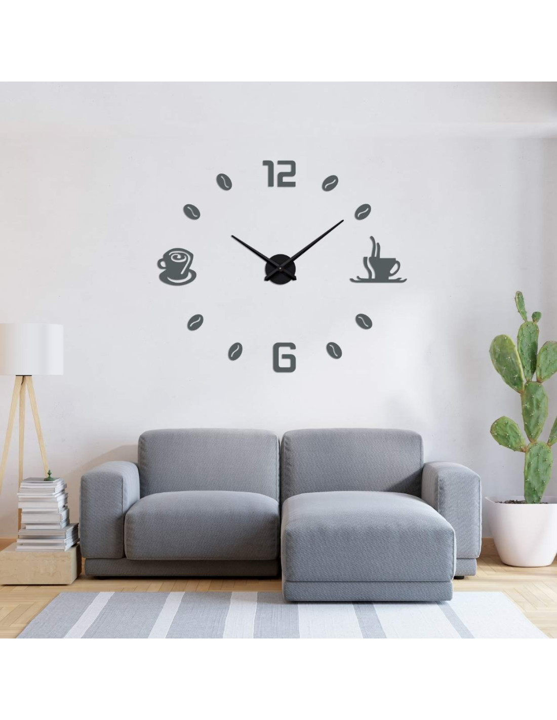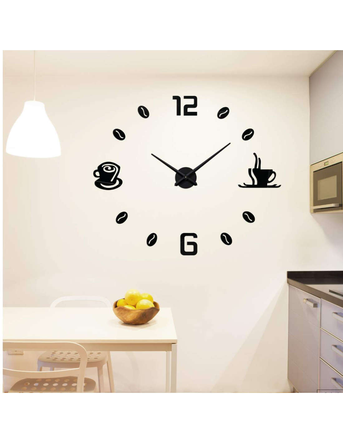 Black sticker clock with minimalist coffee cups and beans is not only a practical but also a stylish interior accessory.