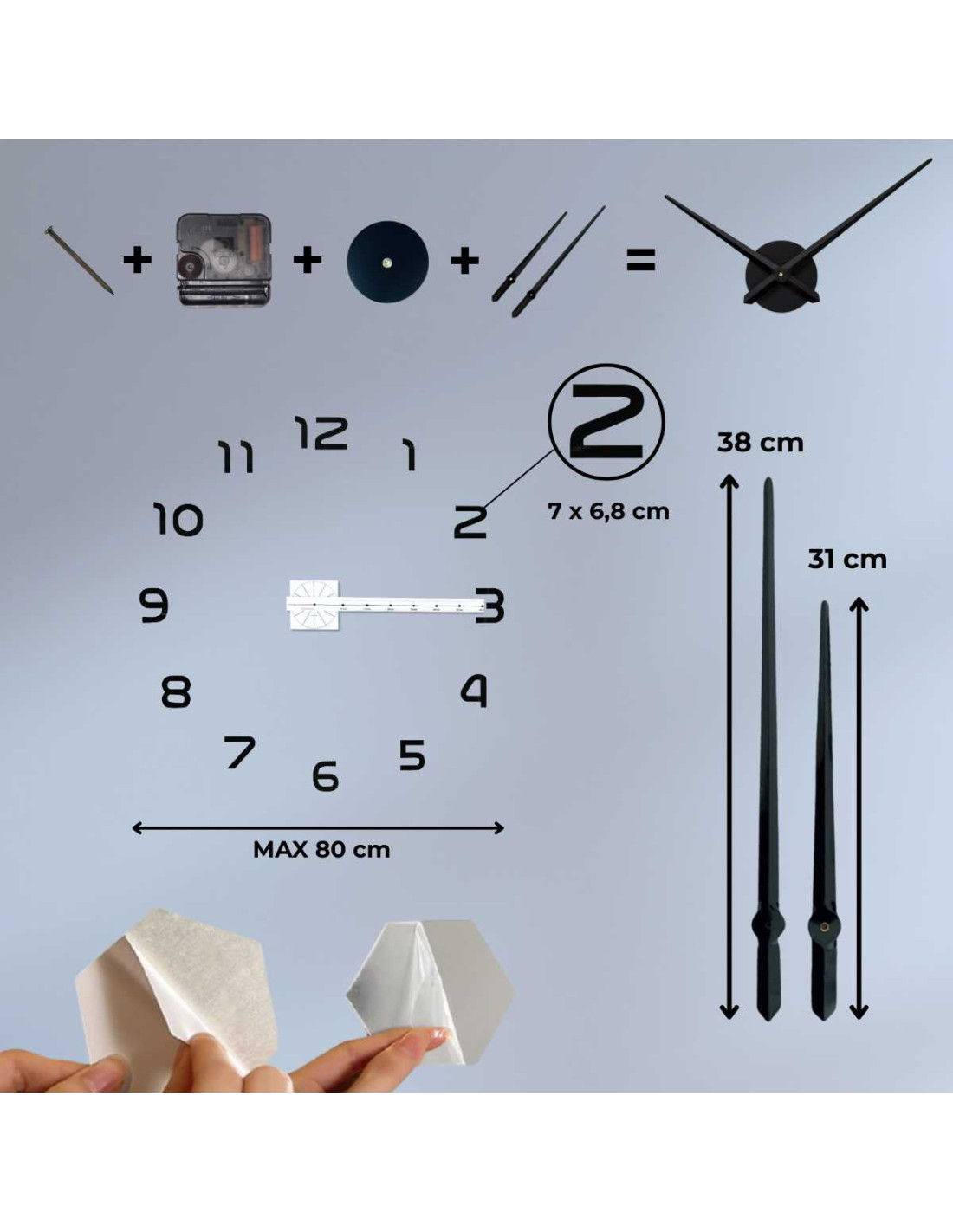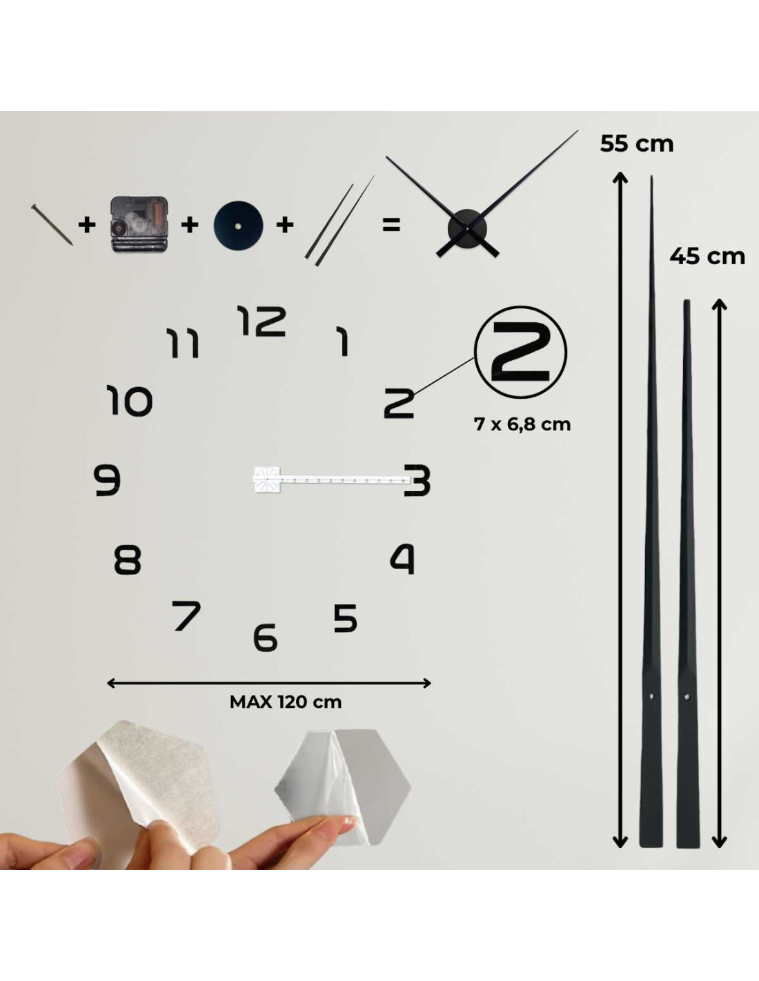 Discover a stylish wall clock with an adjustable diameter of up to 130 cm, which will stand out as a striking element in the living room, bedroom, office or entrance hall.