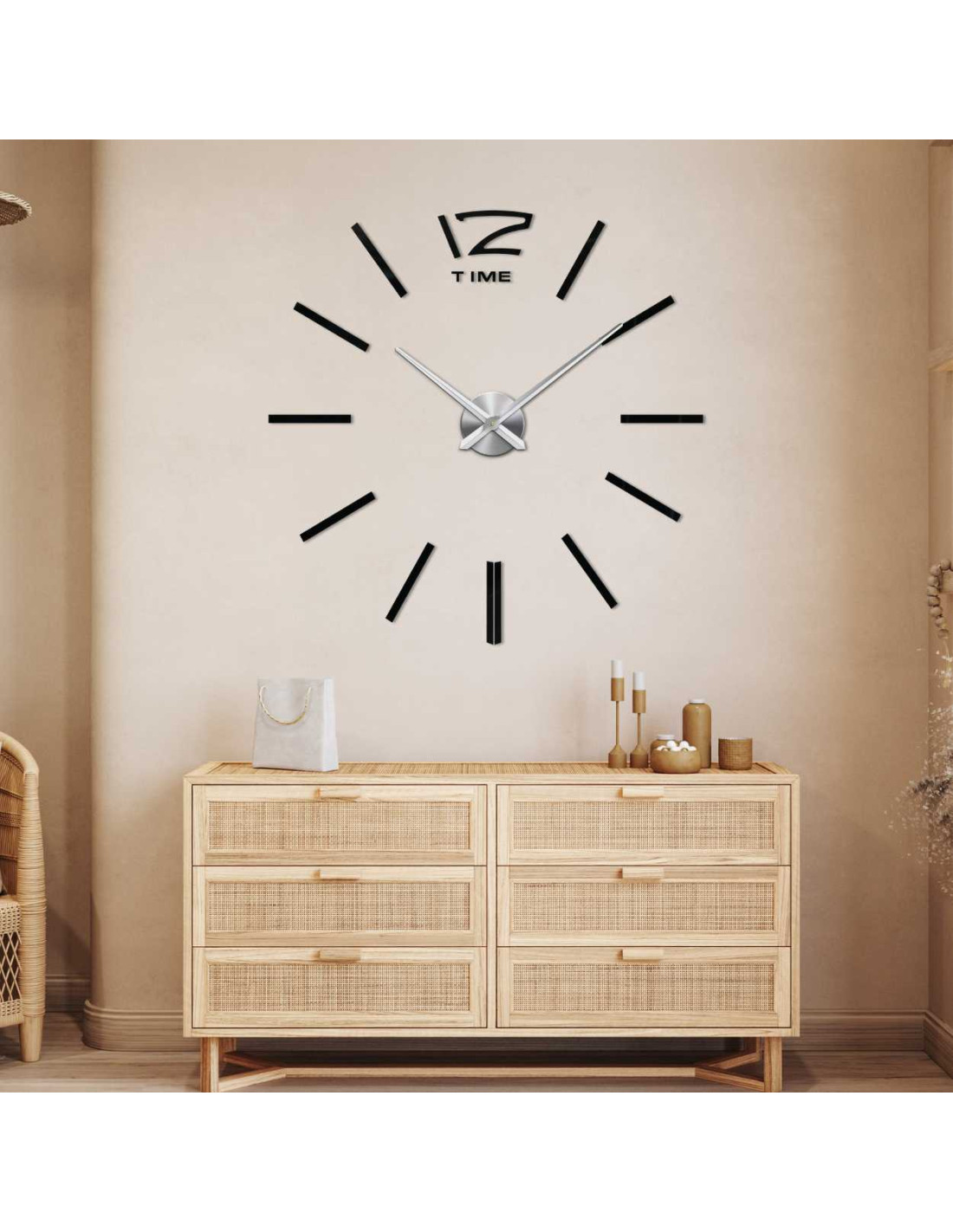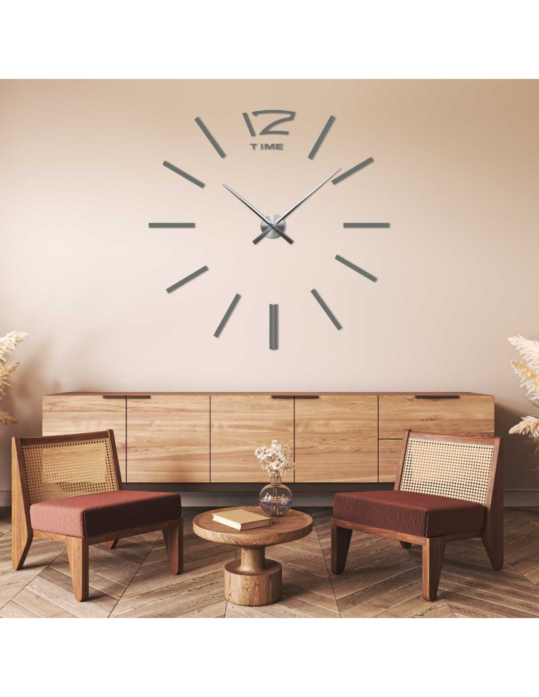 Discover a stylish wall clock with an adjustable diameter of up to 130 cm, which will stand out as a striking element in the living room, bedroom, office or entrance hall.