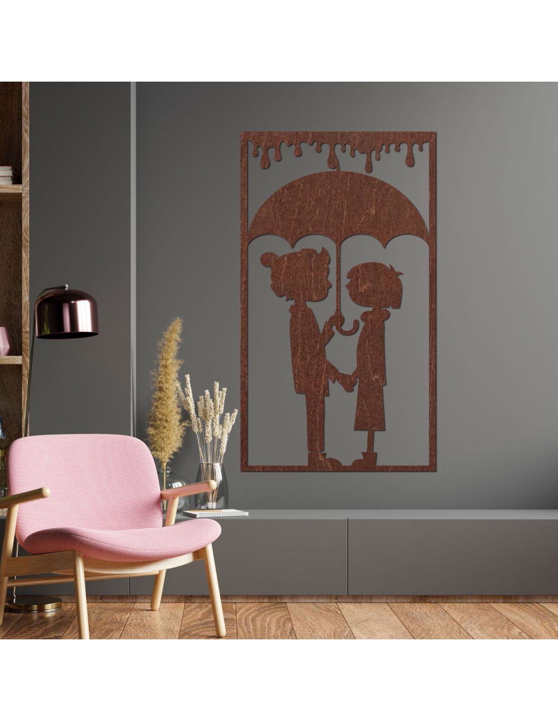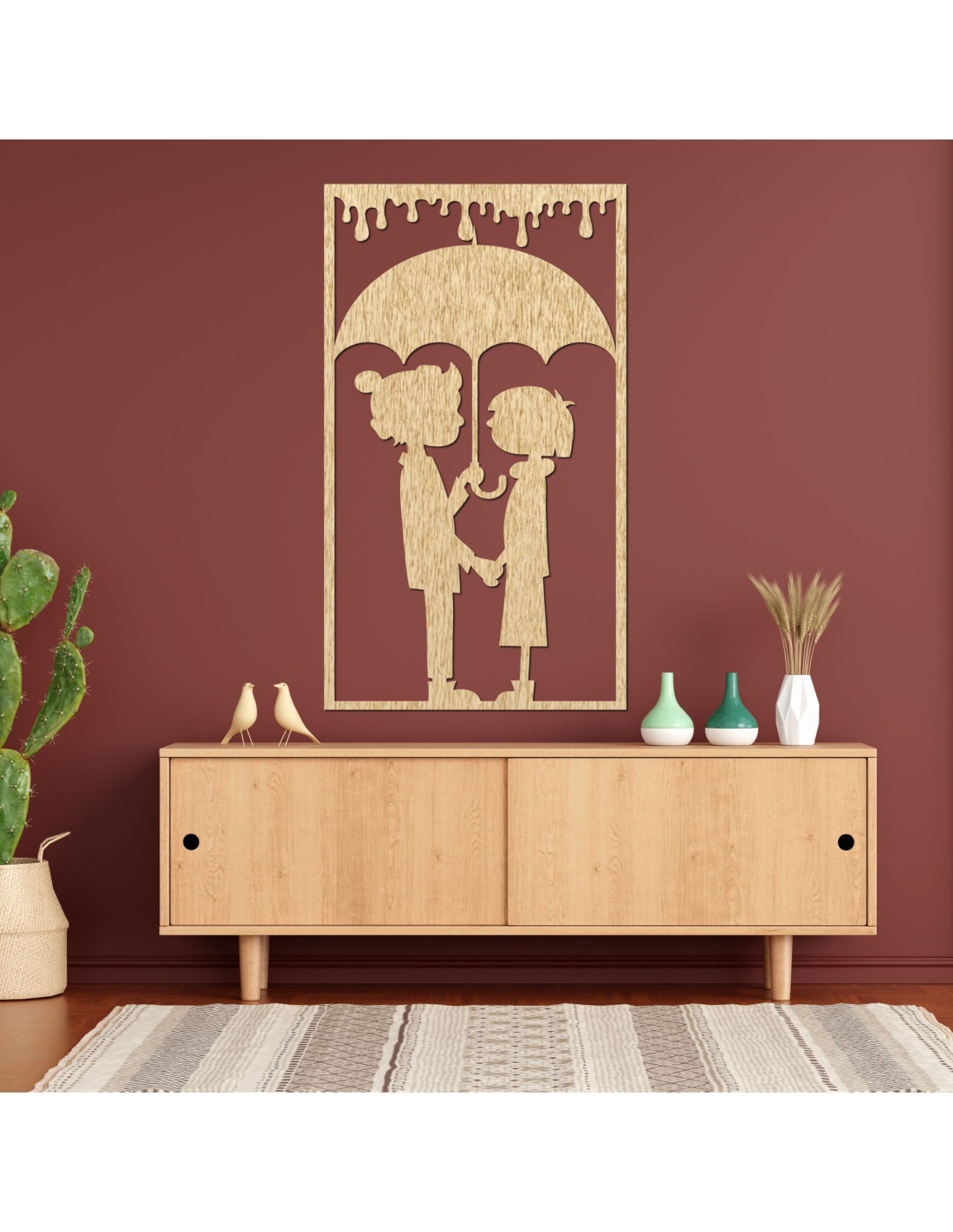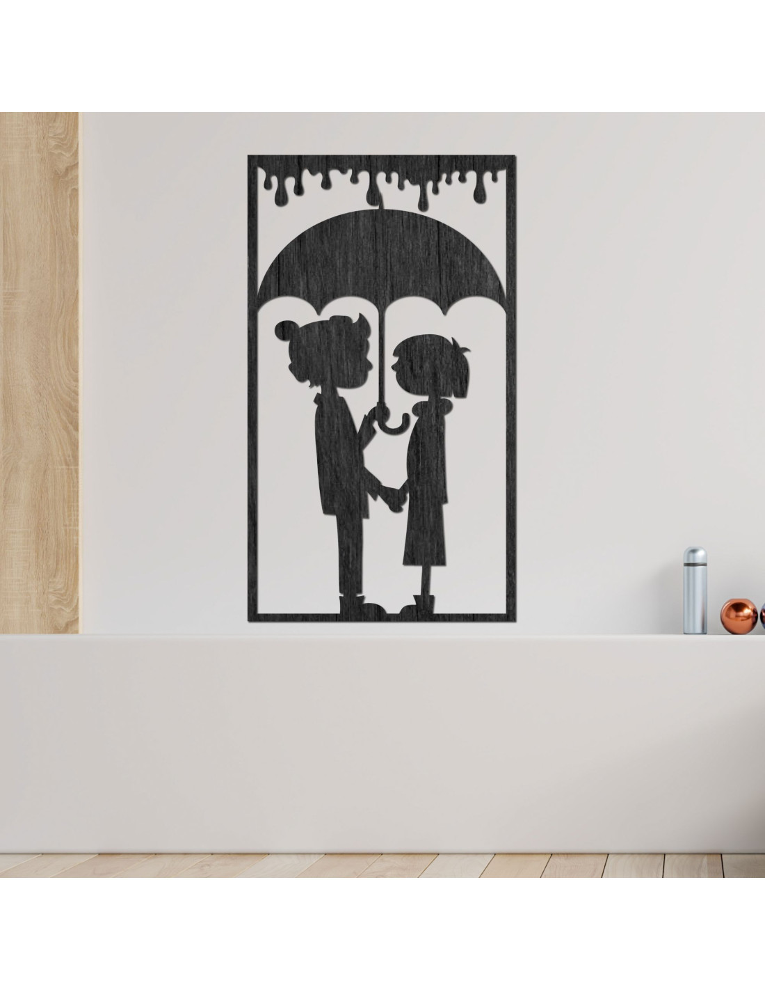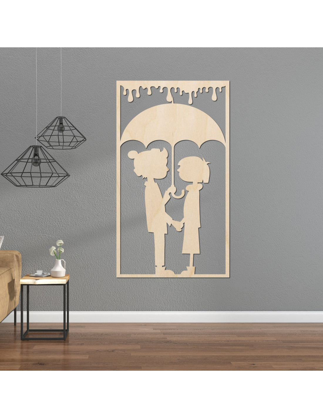 SentopThis wooden wall decoration captures the silhouette of two figures standing under a shared umbrella. The composition creates an intimate moment that reflects the protection, togetherness and tenderness between the figures. The gentle lines of the silhouette add to the elegance and timelessness of the design. Ideally suited as a decorative element for an interior that needs a touch of romance and story.