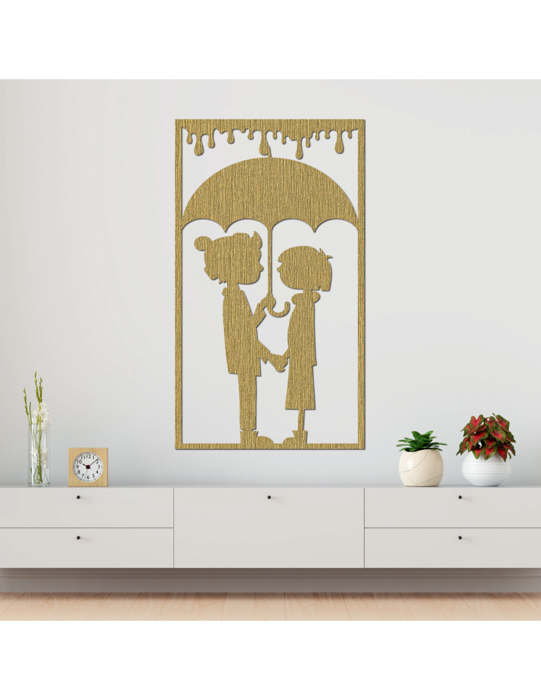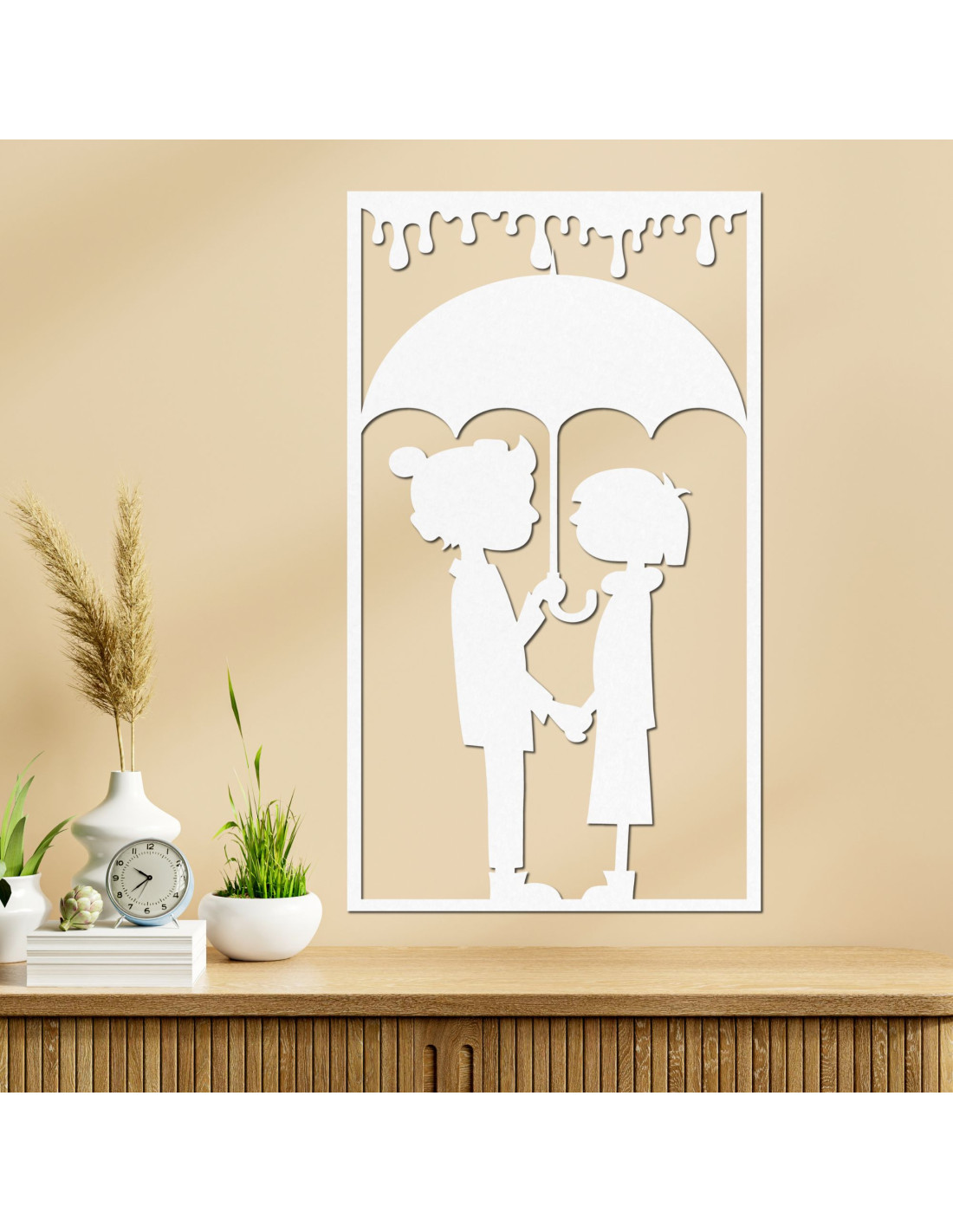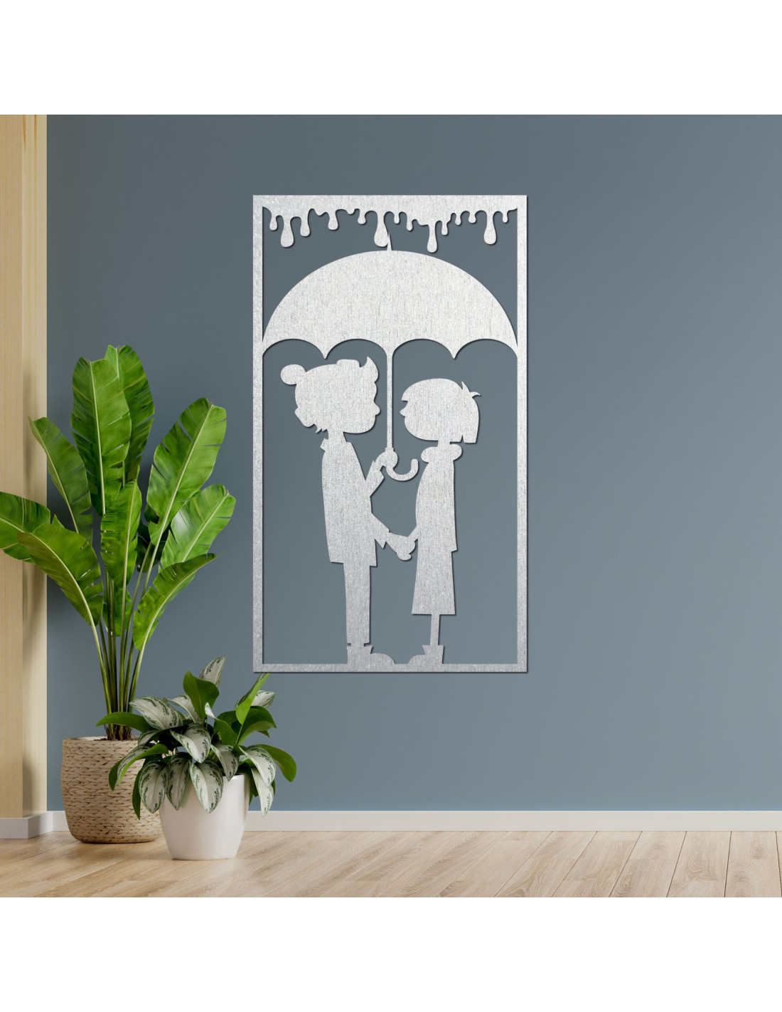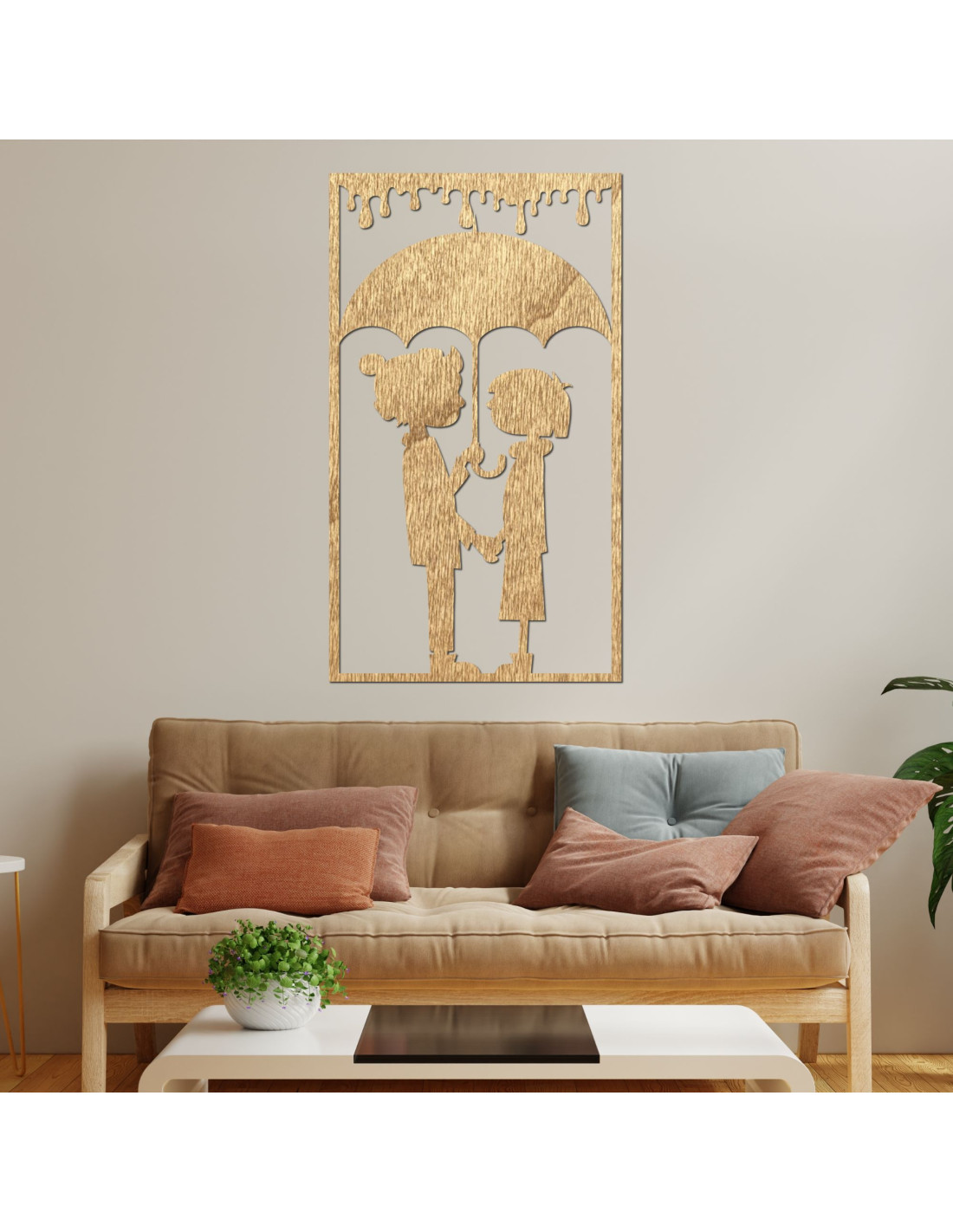 SentopThis wooden wall decoration captures the silhouette of two figures standing under a shared umbrella. The composition creates an intimate moment that reflects the protection, togetherness and tenderness between the figures. The gentle lines of the silhouette add to the elegance and timelessness of the design. Ideally suited as a decorative element for an interior that needs a touch of romance and story.