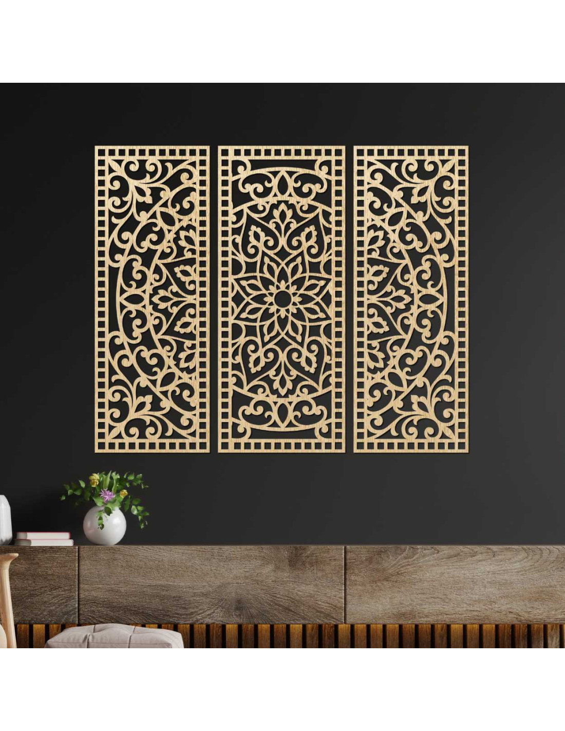 Wall decoration three-piece mandala panel - AURELIA