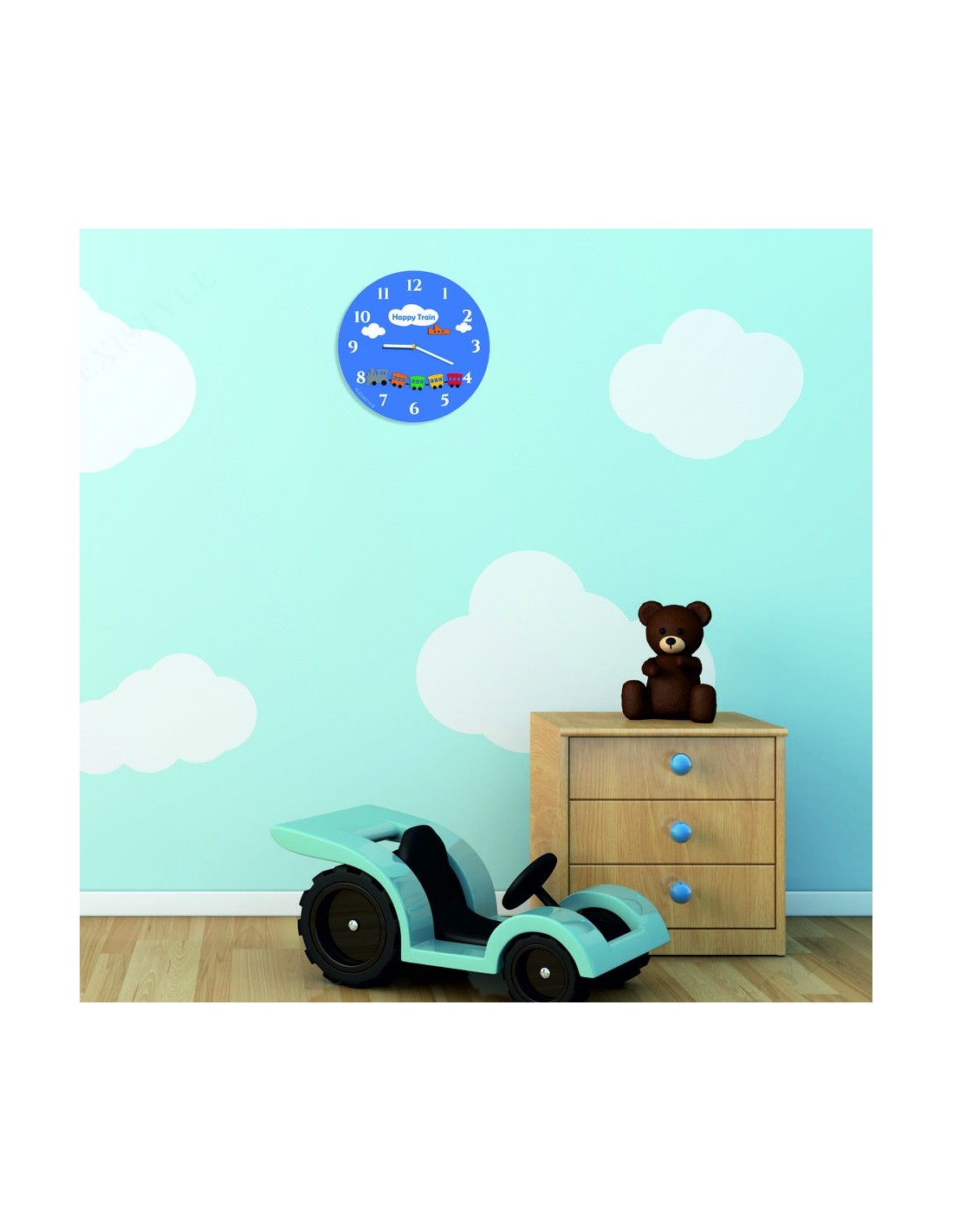Blue wall clock for children's room - HEAPPY