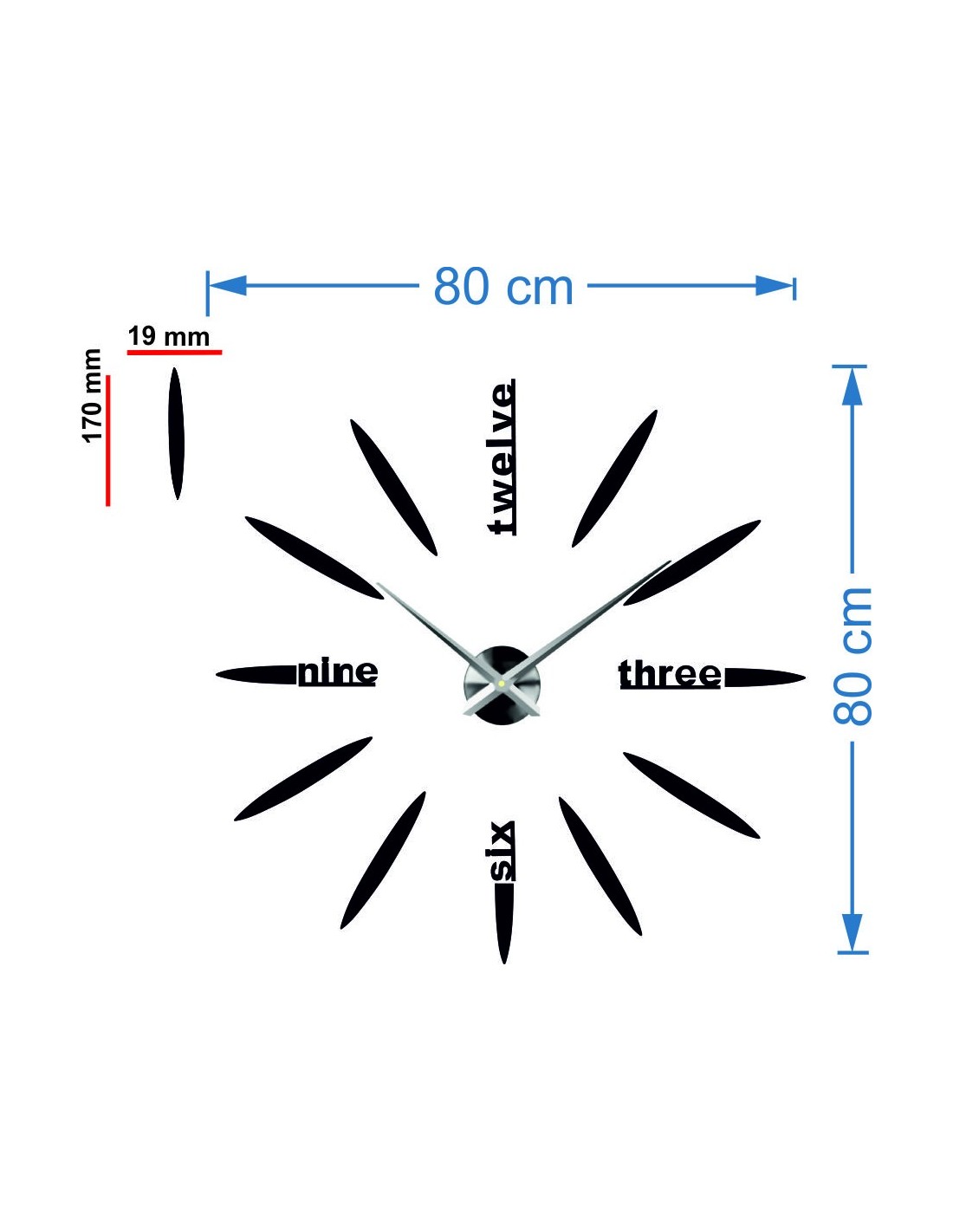 The elegant adhesive wall clock is equipped and supplied with a high-quality movement for a 1.5 Volt AA battery, which is characterized by quiet operation.