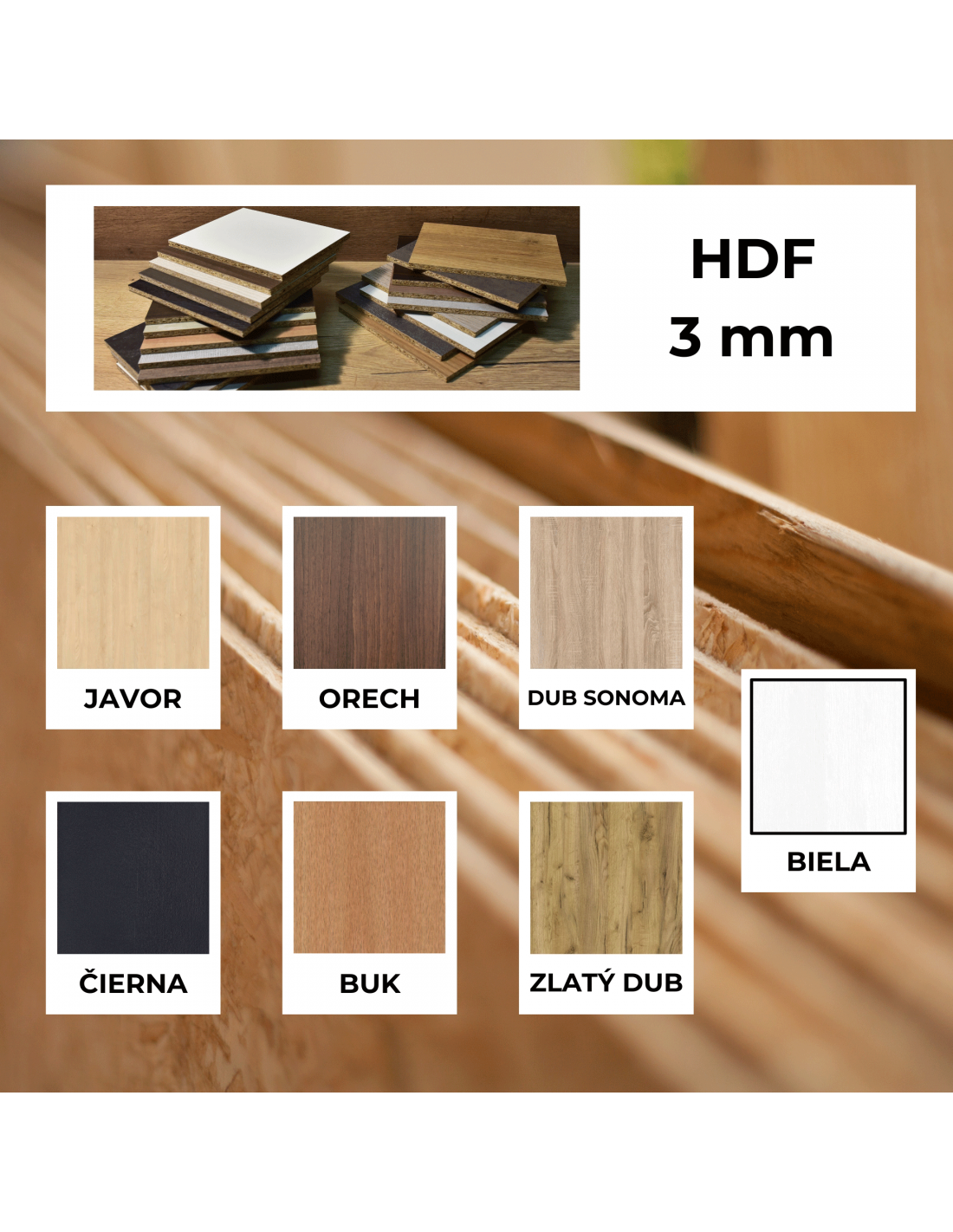 Plywood has a thickness of 5 mm / HDF has a thickness of 3 mm.