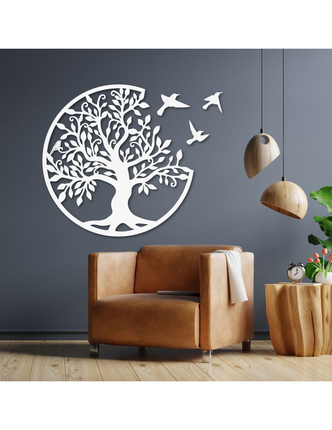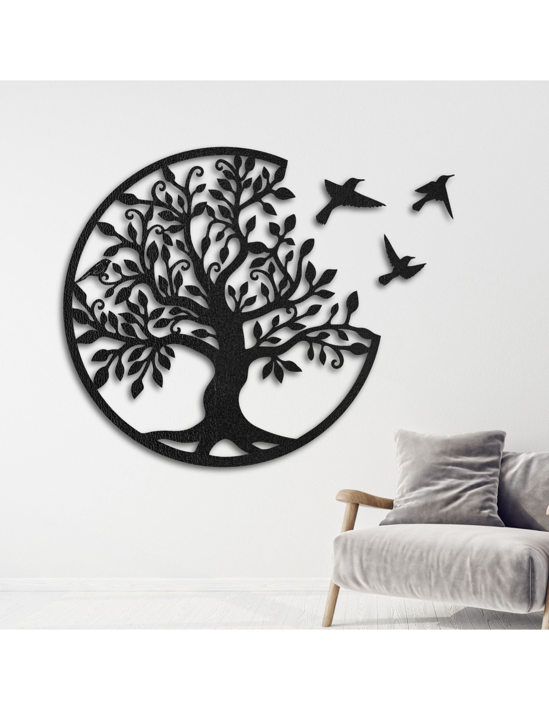 Wooden painting - Tree of Life with 3 flying birds is an elegant wall painting.