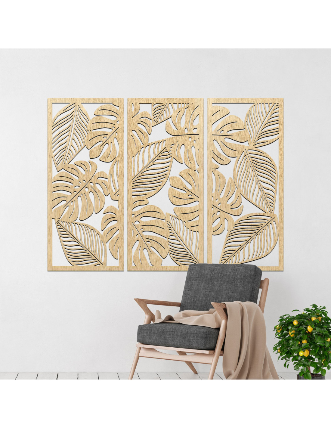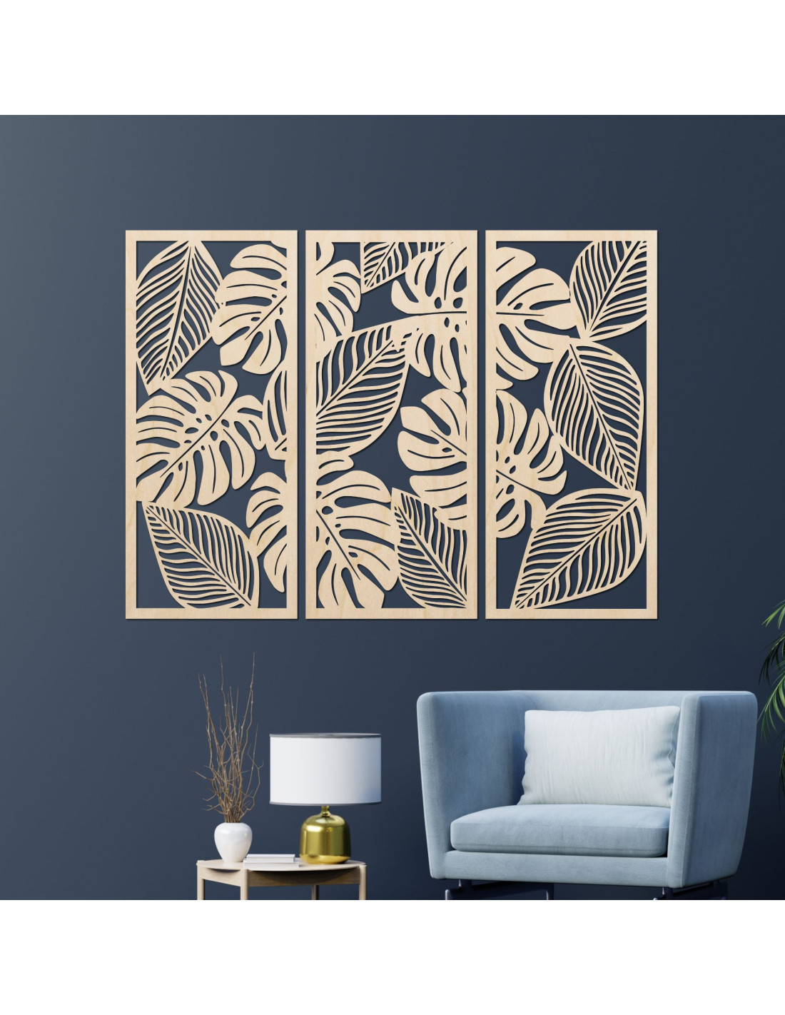 SentopThis wooden three-piece picture with a monstera motif is the perfect way to liven up your interior and add elegance to it. With its unique monstera design and detailed workmanship, you will add a natural and cozy touch to any space. This picture is ideal for decorating the walls in the living room , bedroom or office, where it will become the center of attention.