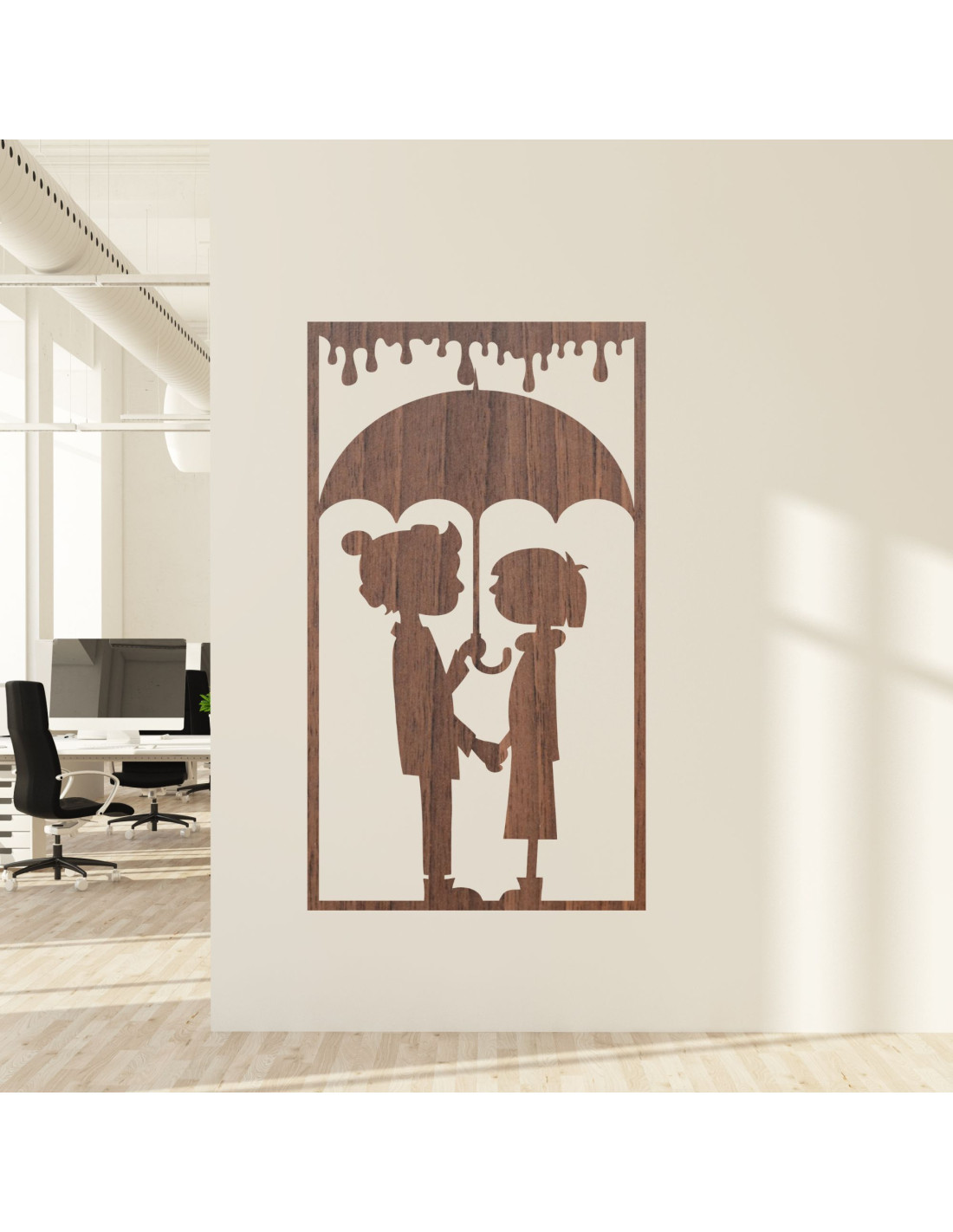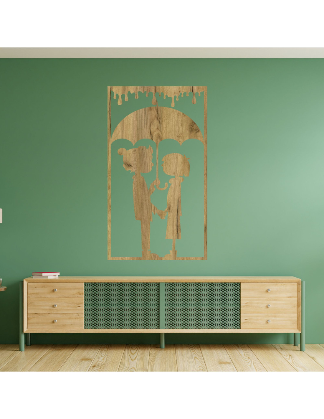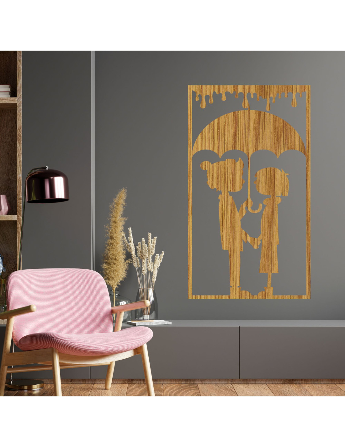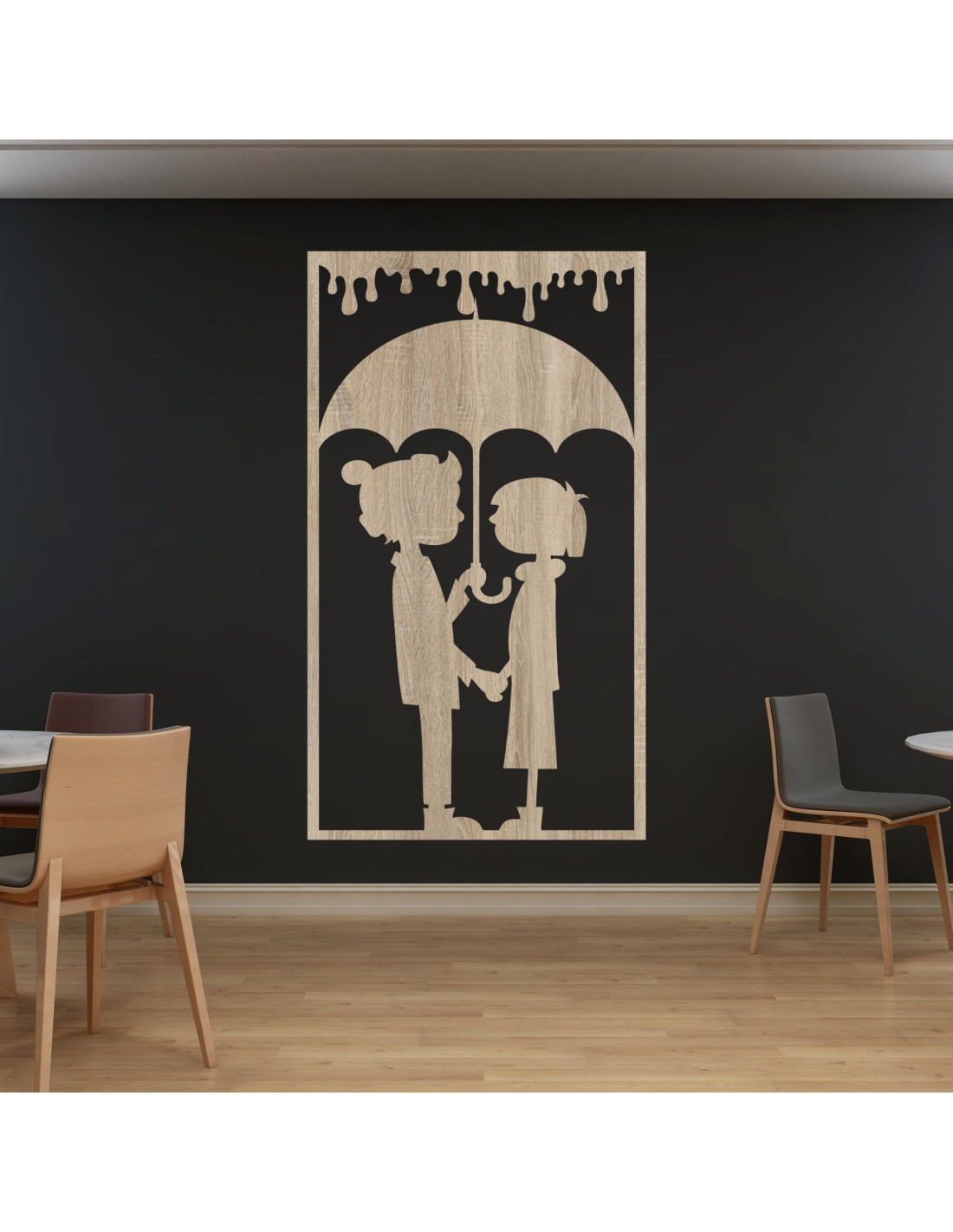 SentopThis wooden wall decoration captures the silhouette of two figures standing under a shared umbrella. The composition creates an intimate moment that reflects the protection, togetherness and tenderness between the figures. The gentle lines of the silhouette add to the elegance and timelessness of the design. Ideally suited as a decorative element for an interior that needs a touch of romance and story.
