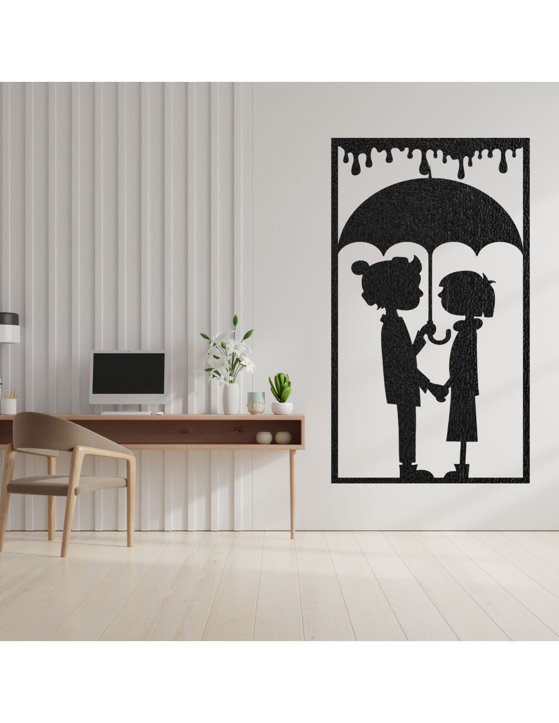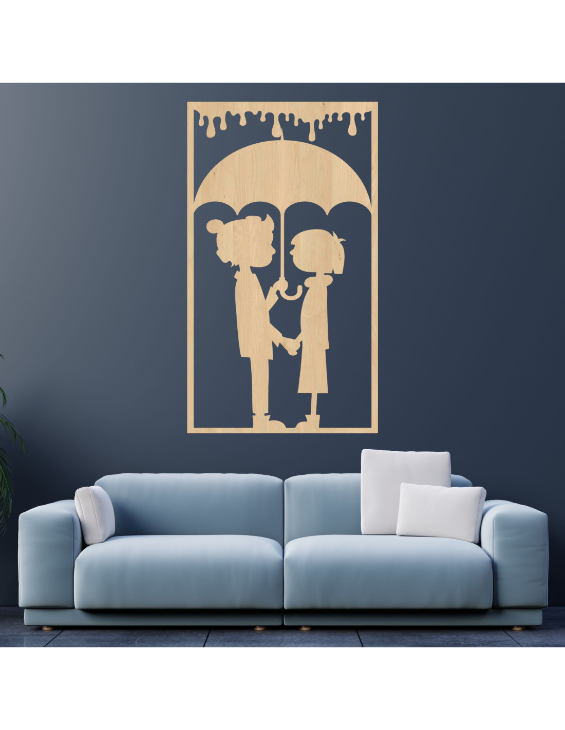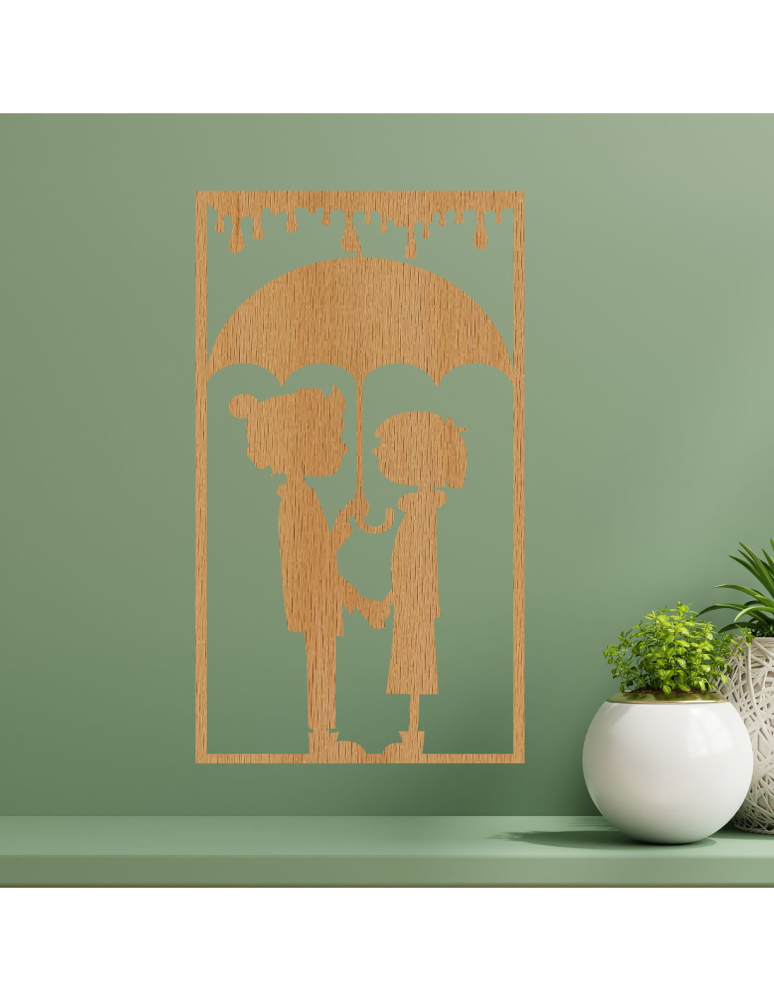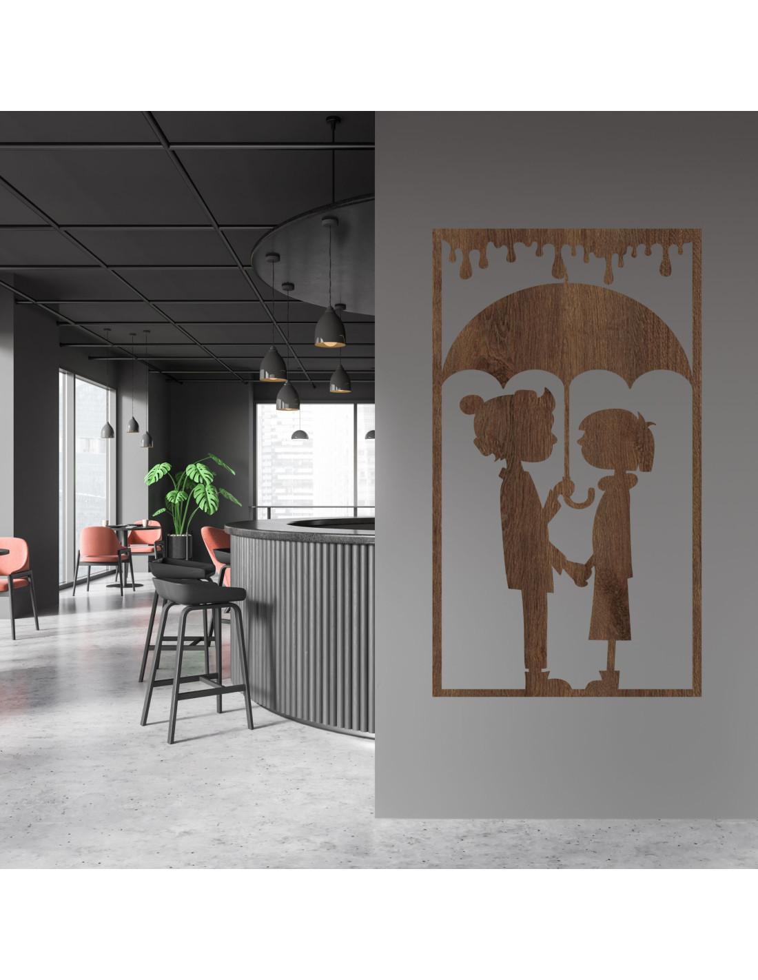 SentopThis wooden wall decoration captures the silhouette of two figures standing under a shared umbrella. The composition creates an intimate moment that reflects the protection, togetherness and tenderness between the figures. The gentle lines of the silhouette add to the elegance and timelessness of the design. Ideally suited as a decorative element for an interior that needs a touch of romance and story.