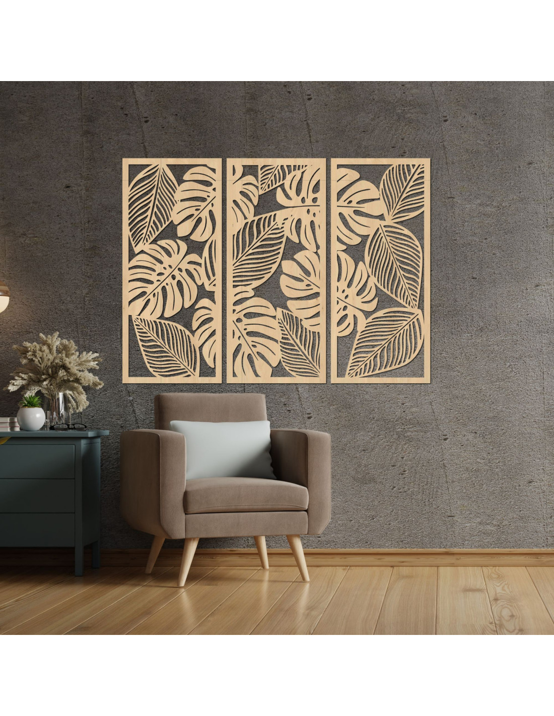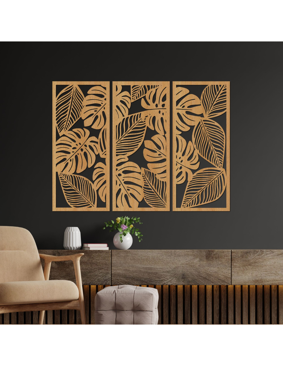 SentopBreathe life into your interior with our wooden three-piece monstera painting .