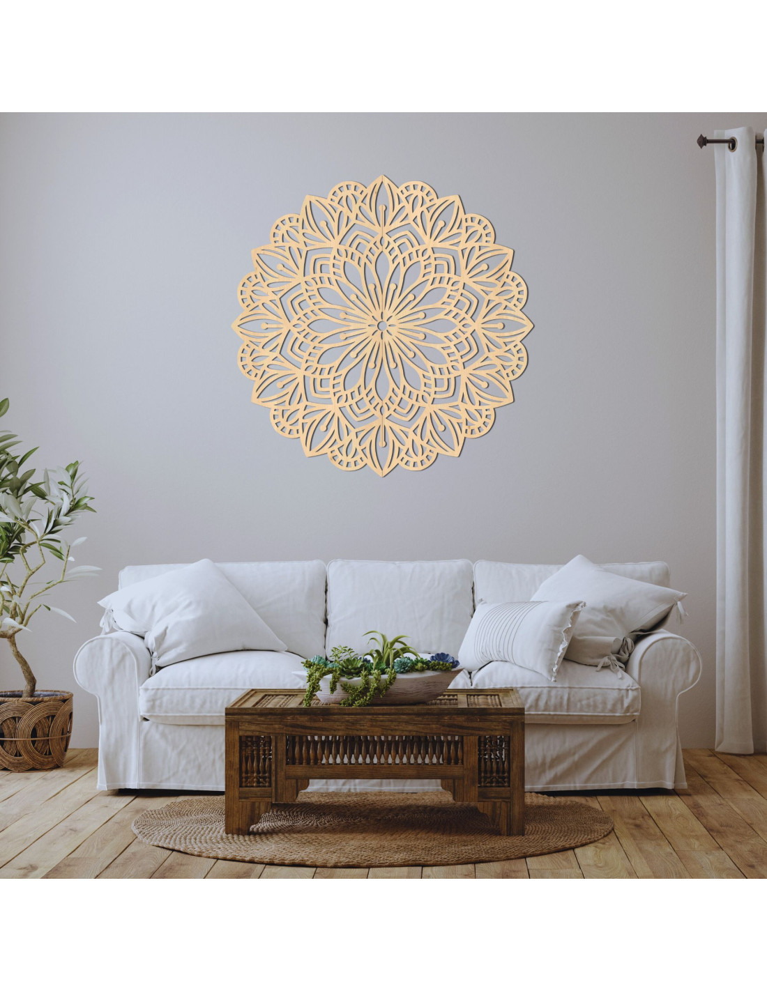 This mandala of flower leaves is an original wooden wall decoration that combines subtle elegance with harmonious design. The meticulously carved pattern evokes natural motifs and brings a sense of calm and balance to your home. This unique accessory can enliven any interior and enhance its character. The mandala is not only a decoration, but also a carrier of positive energy that transforms your space into a place full of harmony and aesthetic beauty.