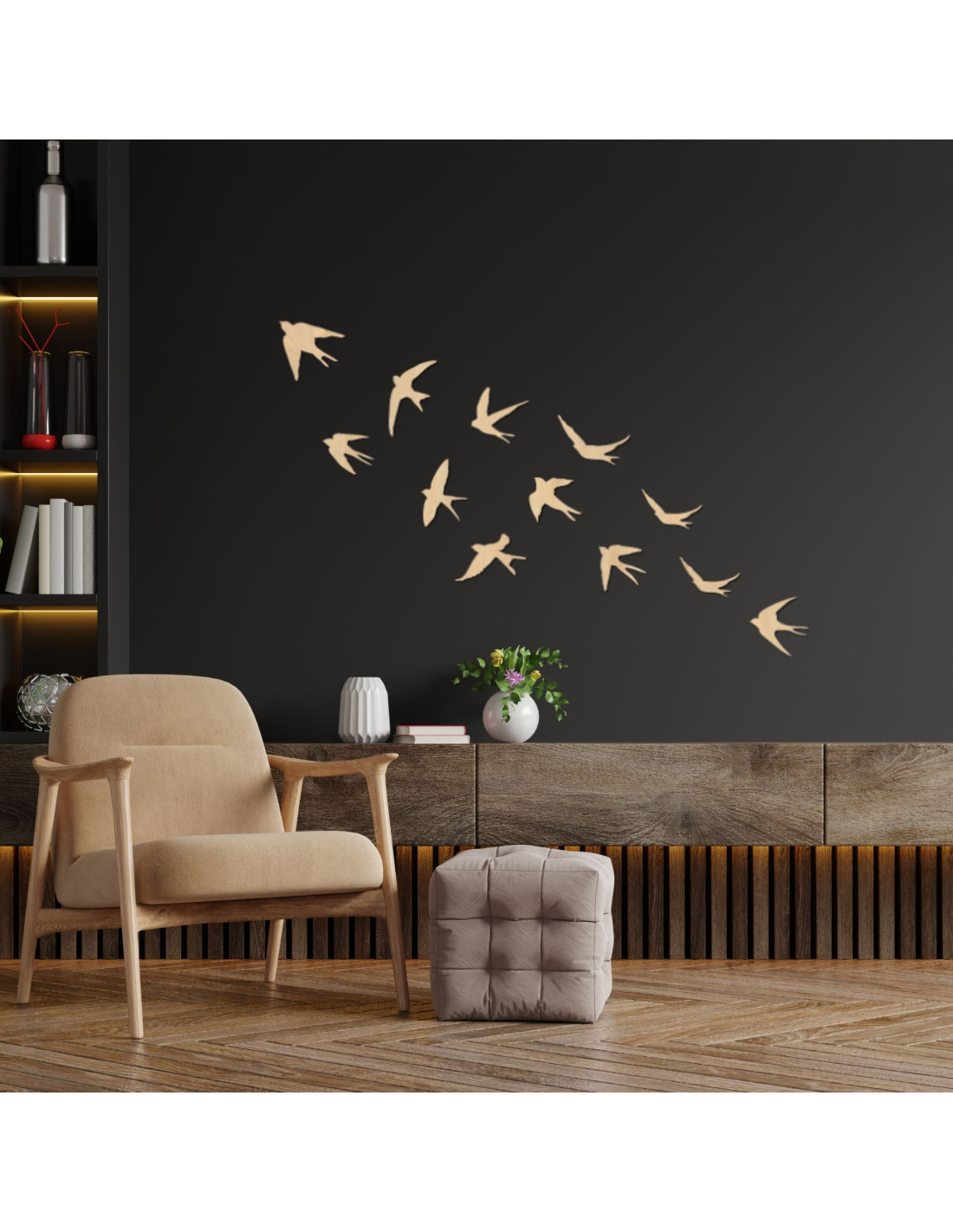 Wall decoration - swallows, wooden flying birds , nature-inspired art (set of 12 pieces)