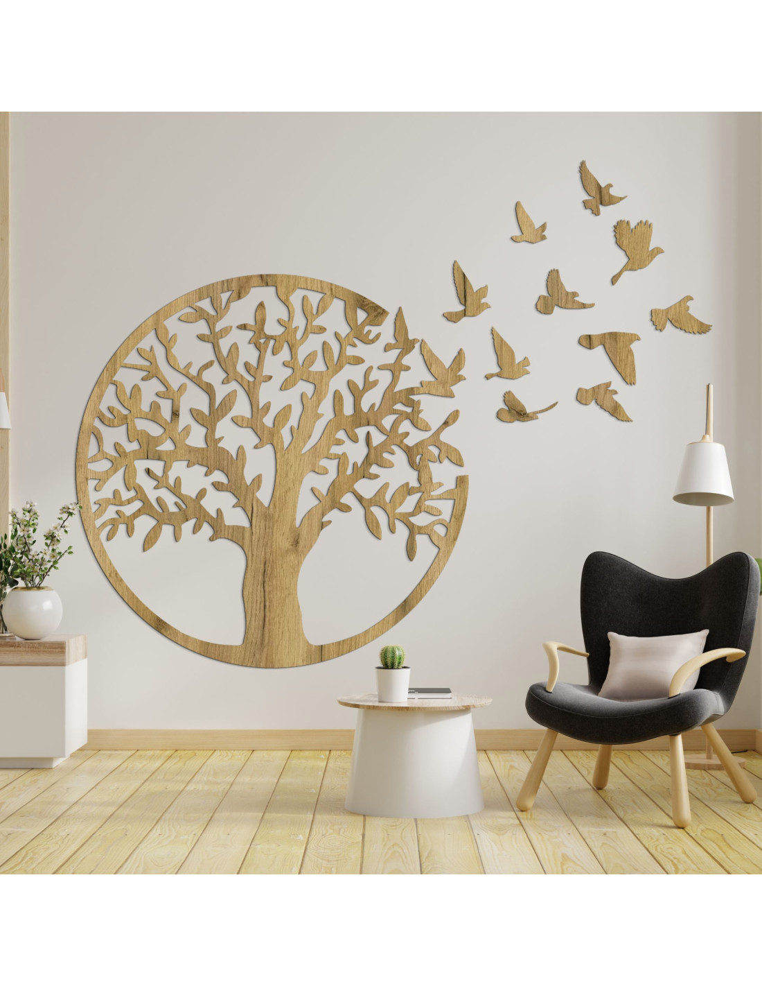 Add a unique piece of nature to your home with our elegant wooden wall decor, depicting a tree and soaring birds. This modern design not only beautifies the interior, but also creates a cozy atmosphere. It is ideal for children's rooms, living rooms or offices, where it will add warmth and character to the space. Made of high-quality wood, it guarantees durability and longevity. Order it today and liven up your walls! Wooden Wall Art Tree of Life: Rustic Home Decor Panel, Tree of Life Wooden Wall Art: Rustic Home Decor Panel