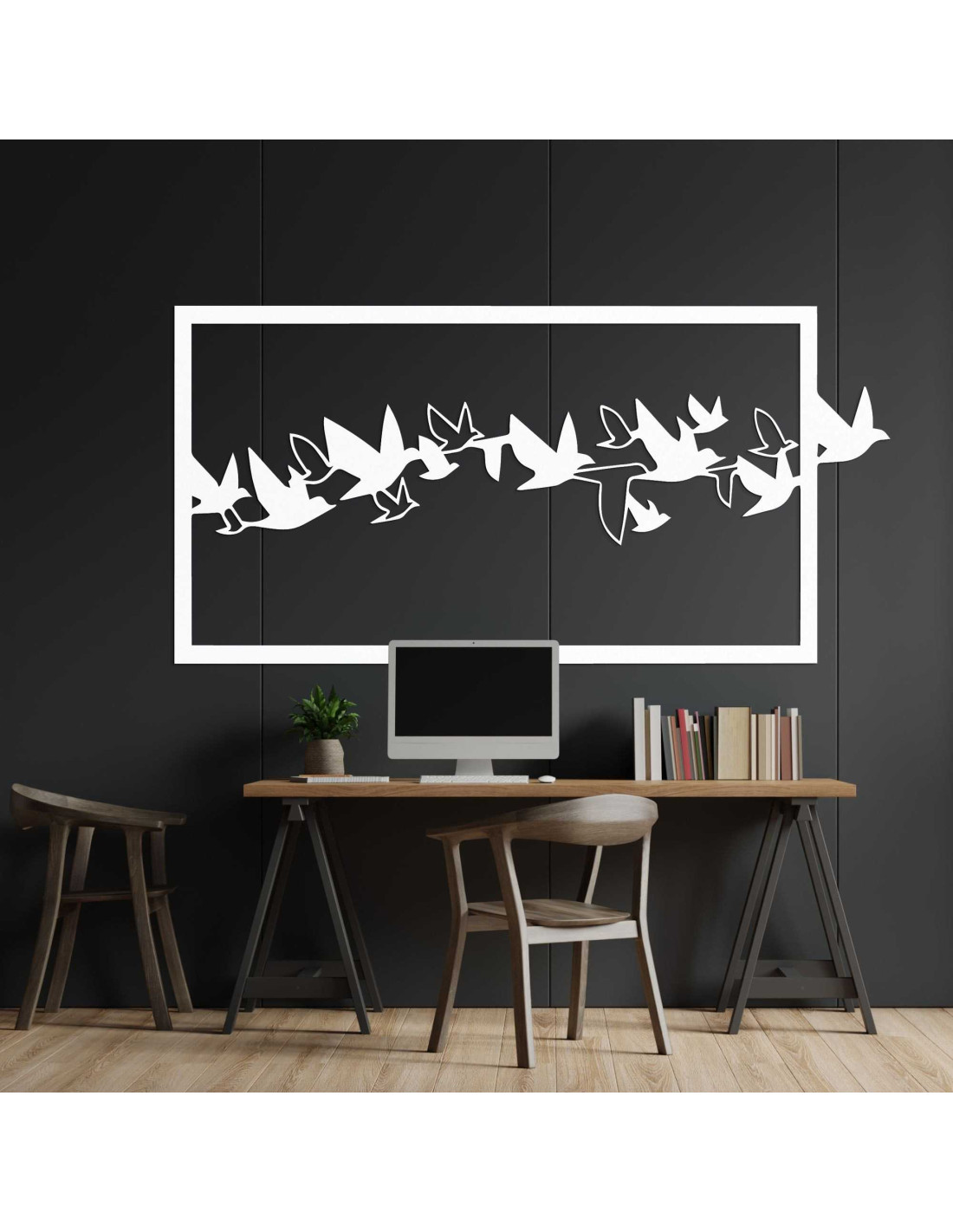 The composition of a group of flying birds creates a visual metaphor of unity and direction. The design relies on contrast and rhythm, which gives it an exceptional character. Here, movement becomes the central element that draws the viewer into the action. The pure form brings out the essence of the idea without visual distractions.