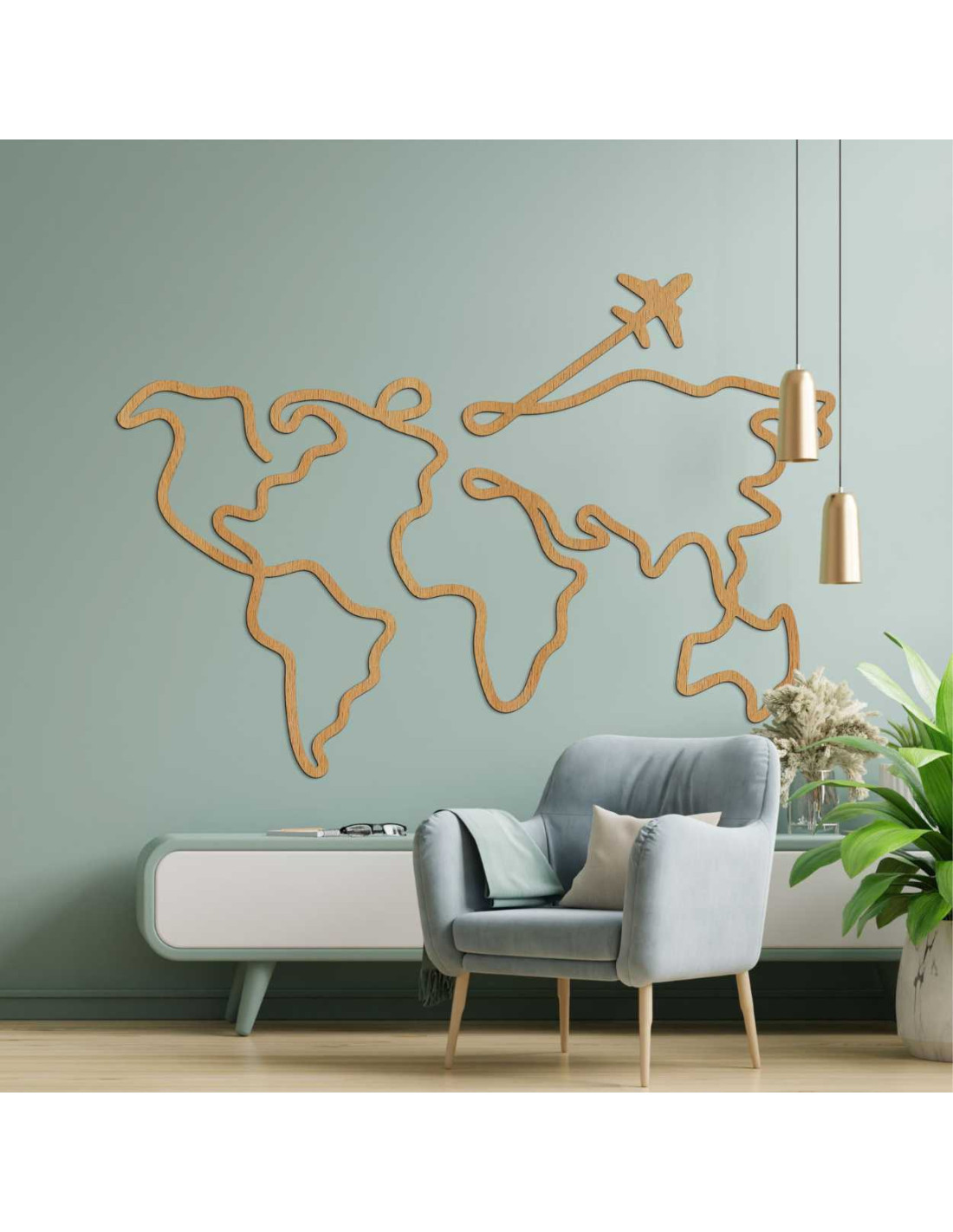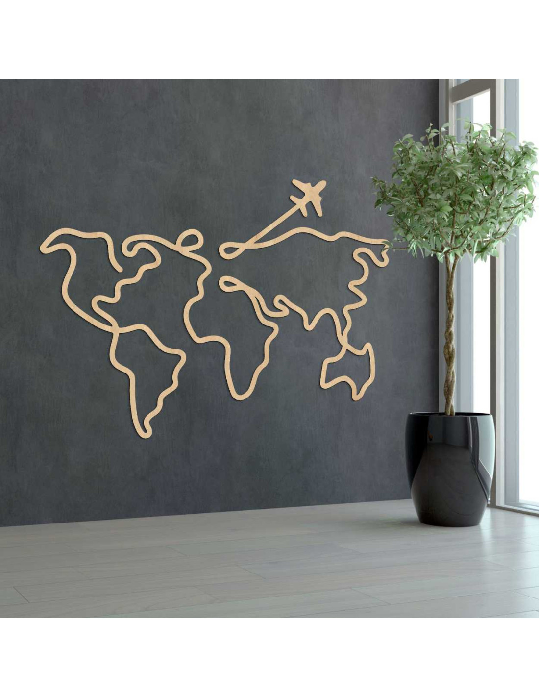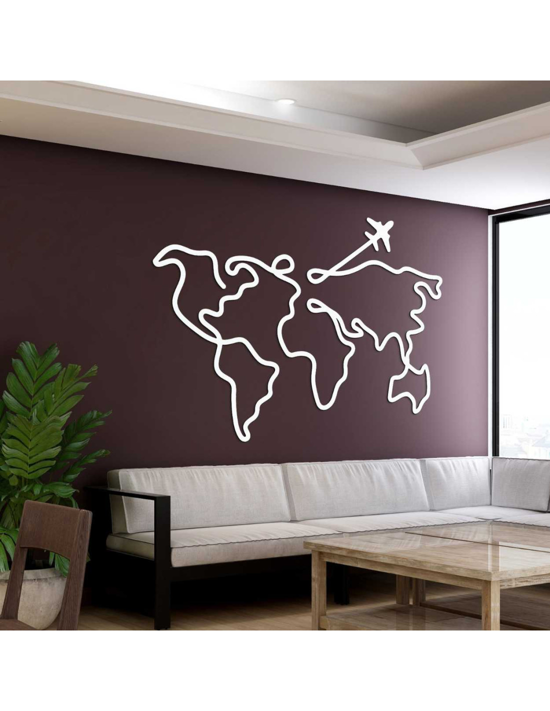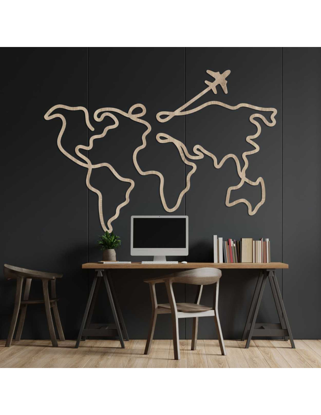 The shape of the world map connected by one elegant stroke creates the impression of a continuous journey.
