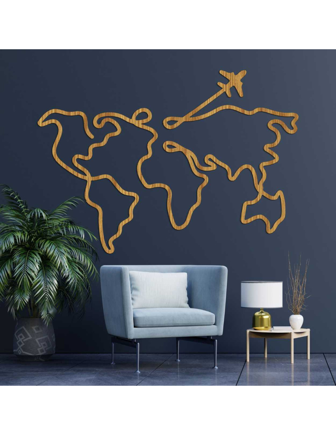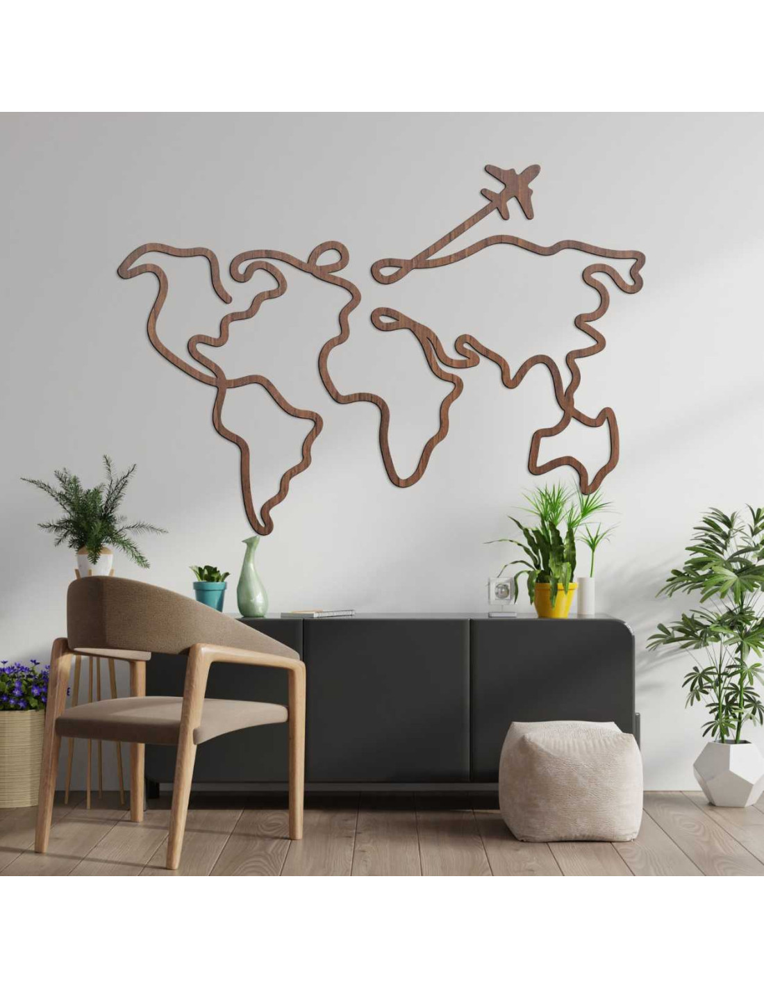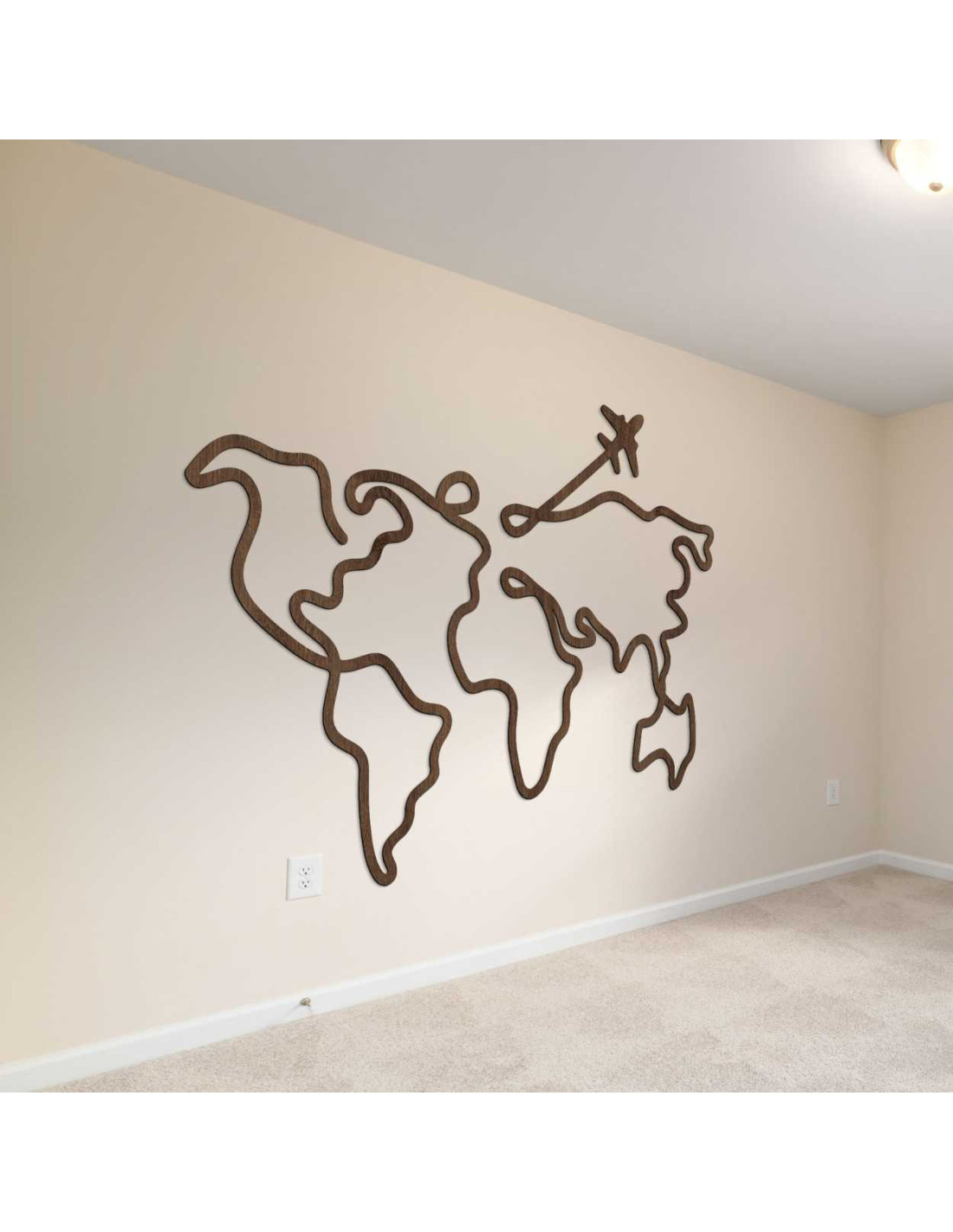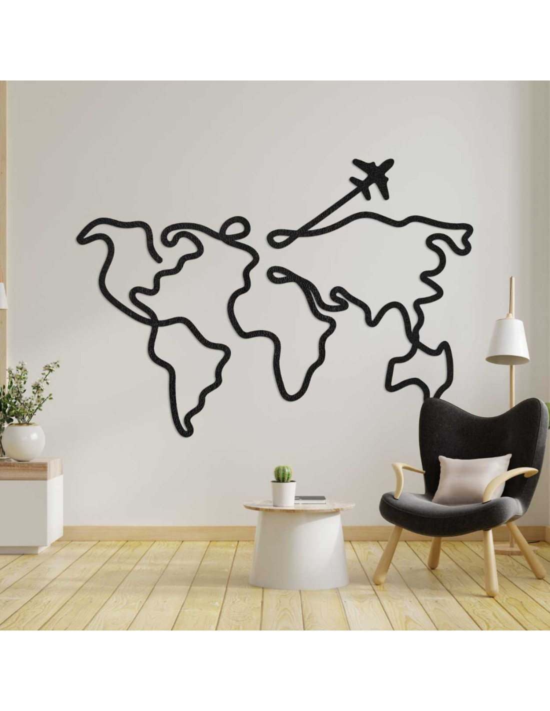 The shape of the world map connected by one elegant stroke creates the impression of a continuous journey.