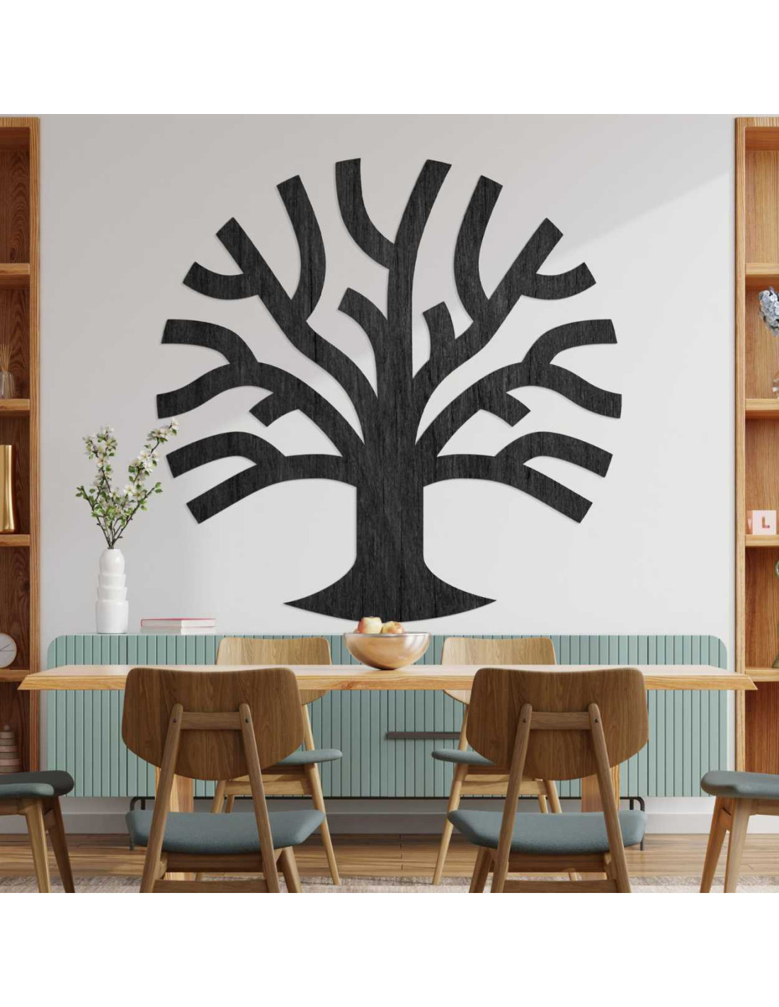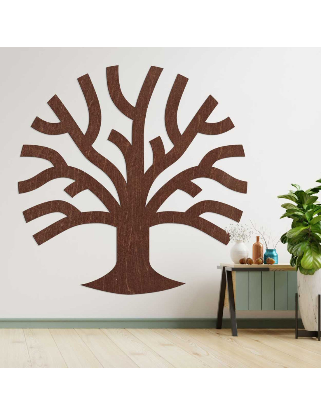 The wooden wall decoration in the shape of a tree of life will impress with its clean lines and timeless design .