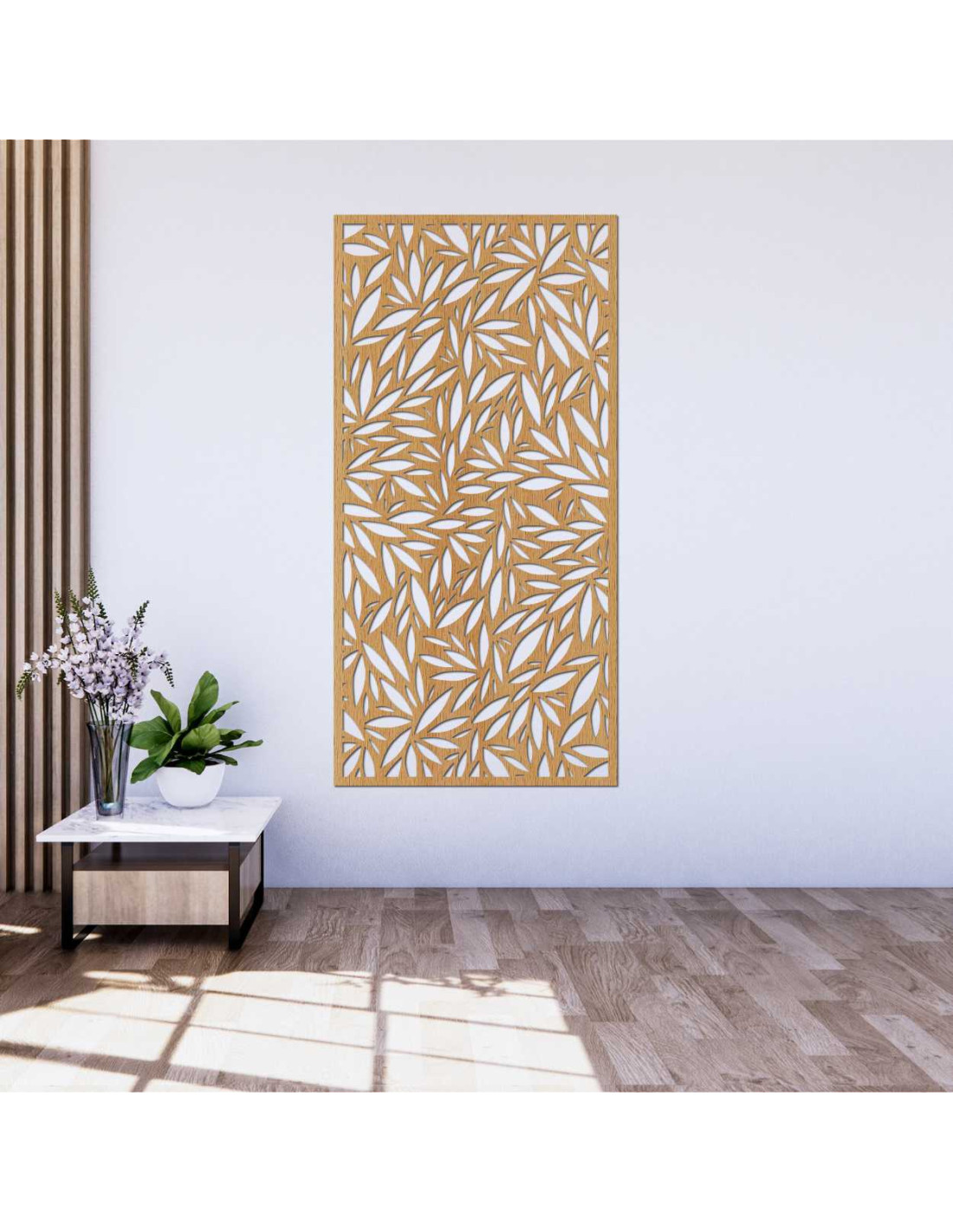 Modern wooden decoration with natural leaf pattern