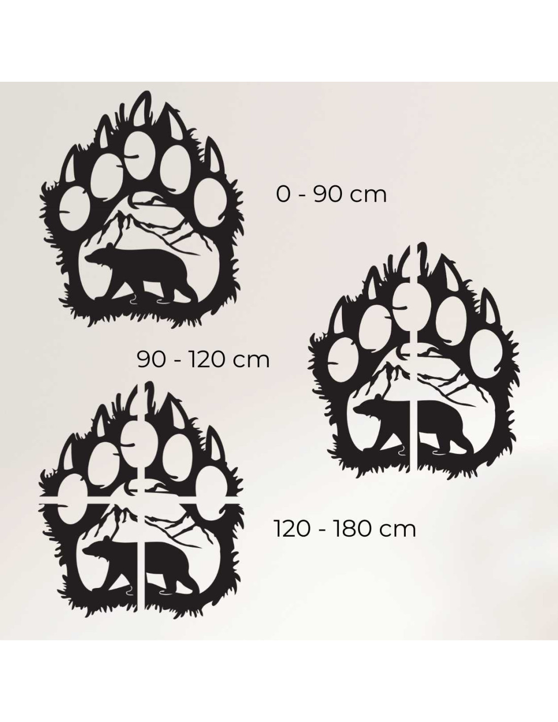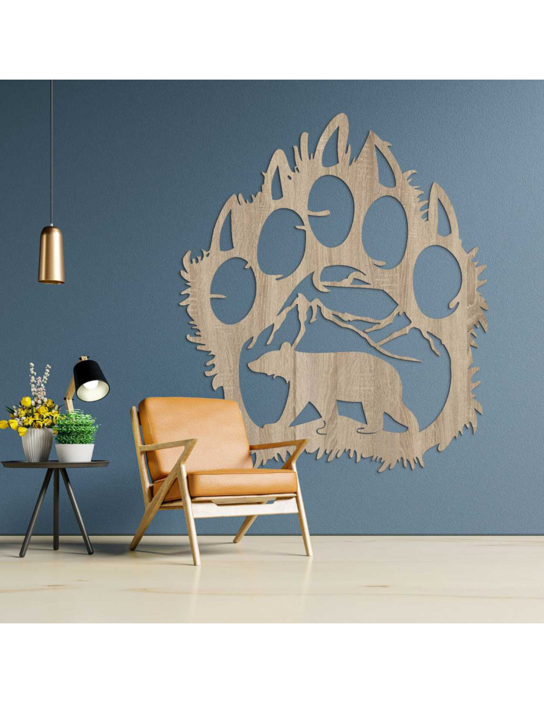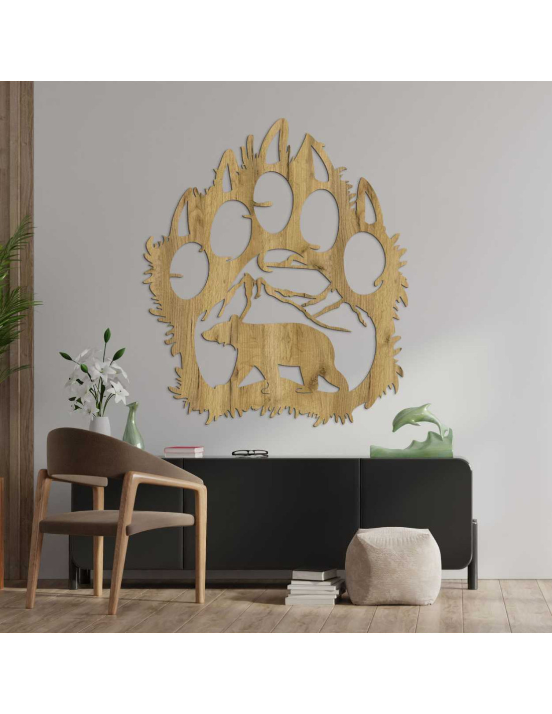 The dynamic silhouette of a bear track complemented by natural scenes brings character and depth to the space.