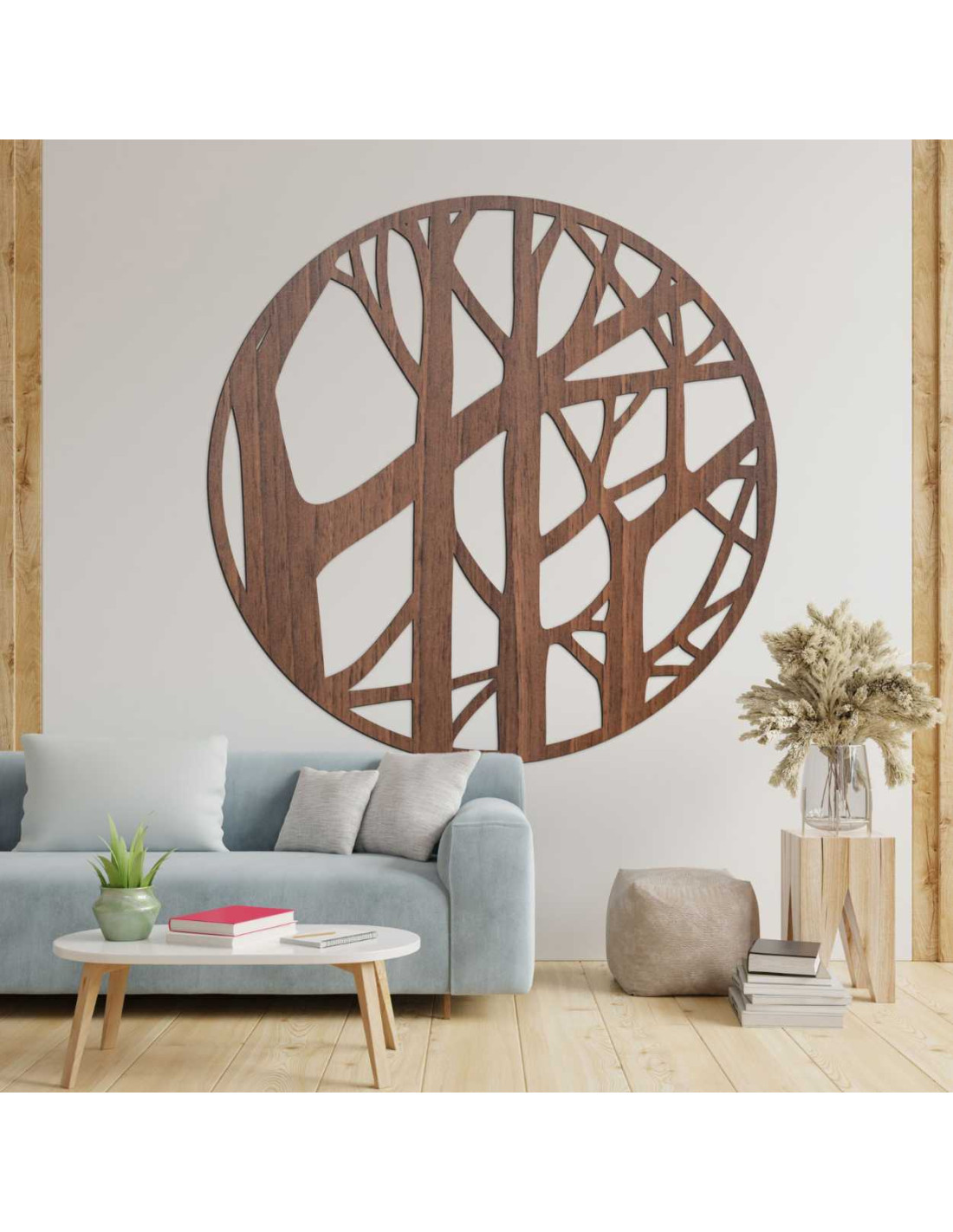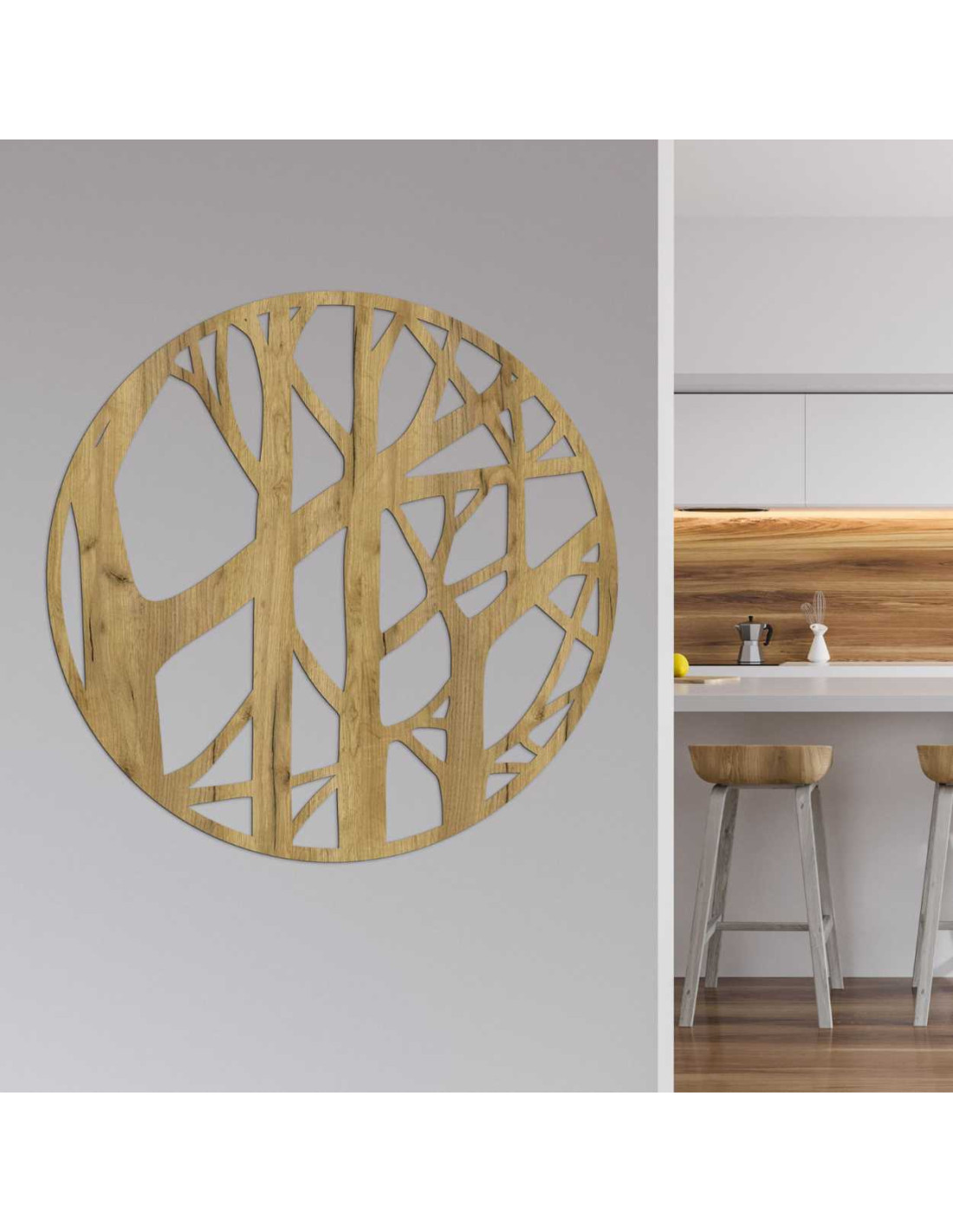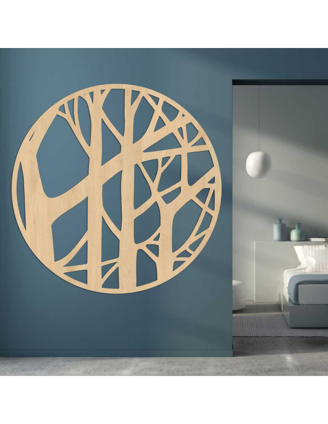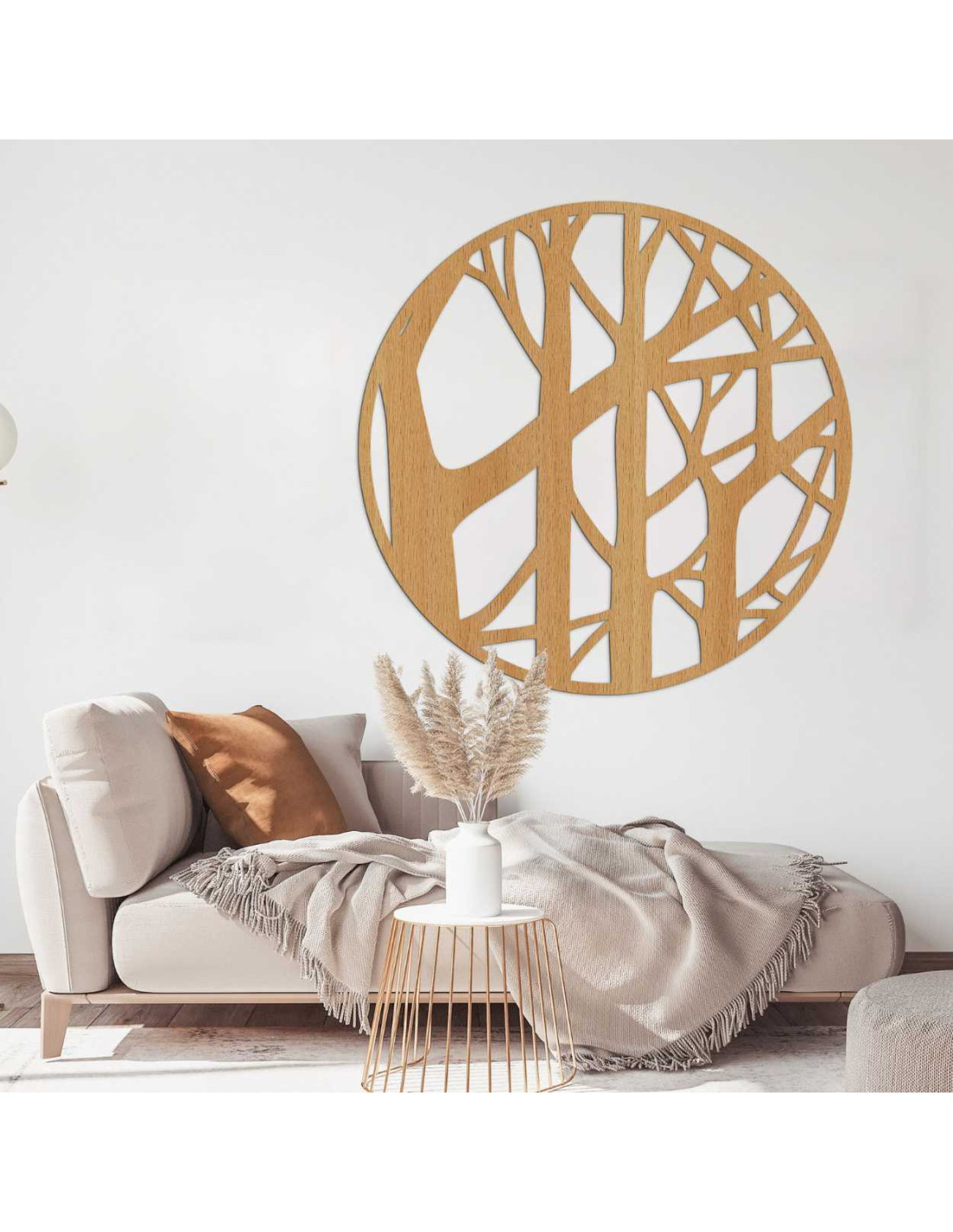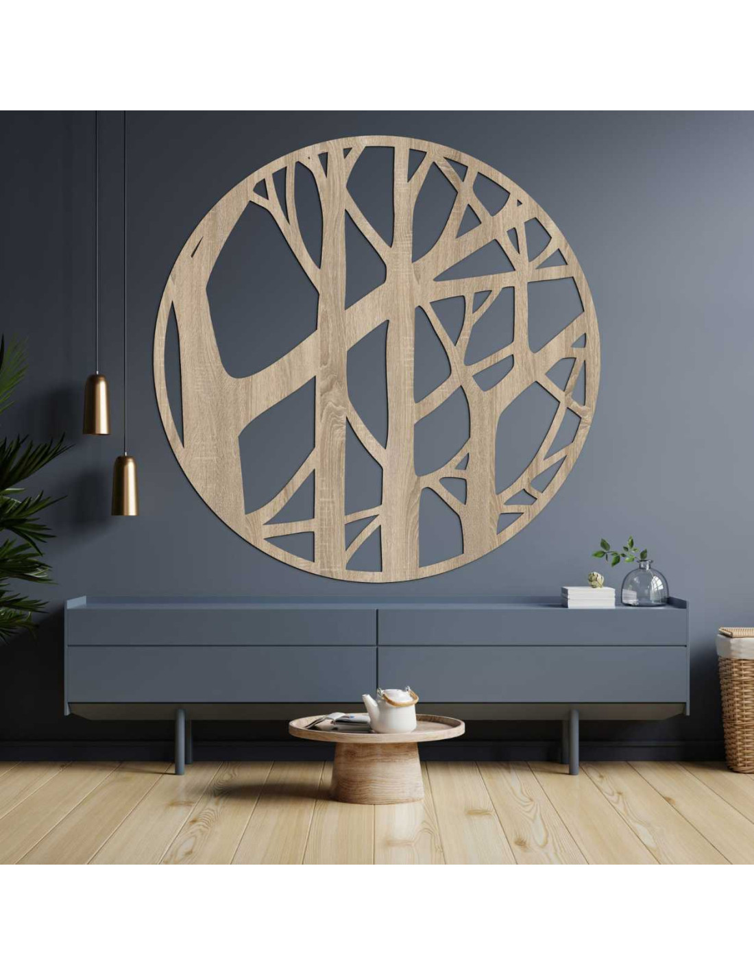 The tree motif feels relaxed and organized at the same time, bringing visual order to the space.
