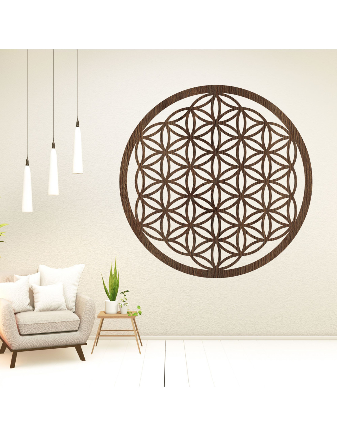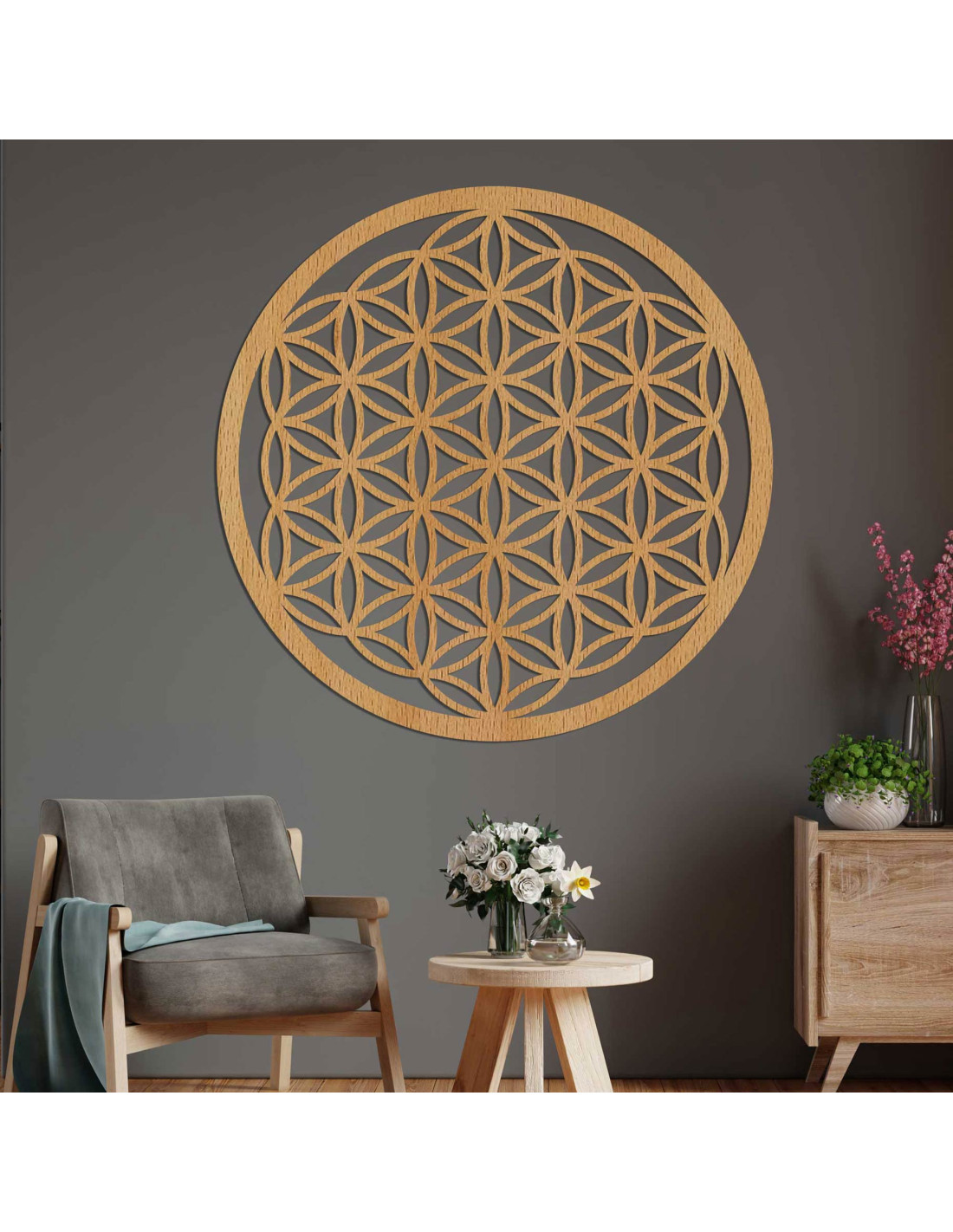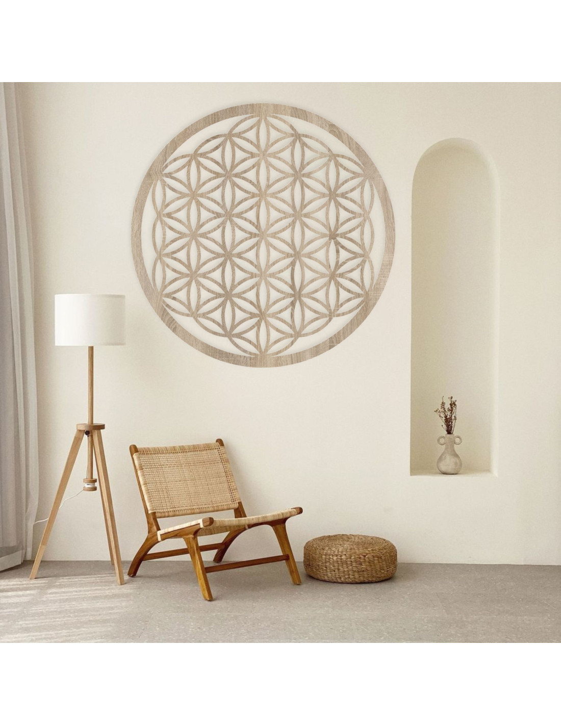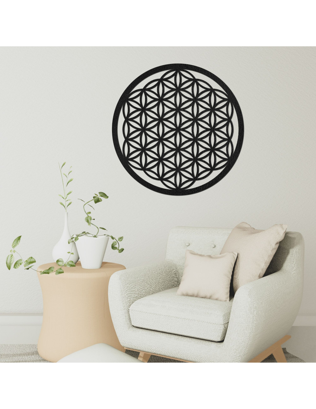 The design of this mandala is inspired by the ancient symbol of life , found in various cultures and representing the fundamental principles of the universe and life, and is believed to have the ability to improve the energy of a space and promote inner peace. The Flower of Life is a symbol that represents harmony, unity and the interconnectedness of everything that surrounds us .