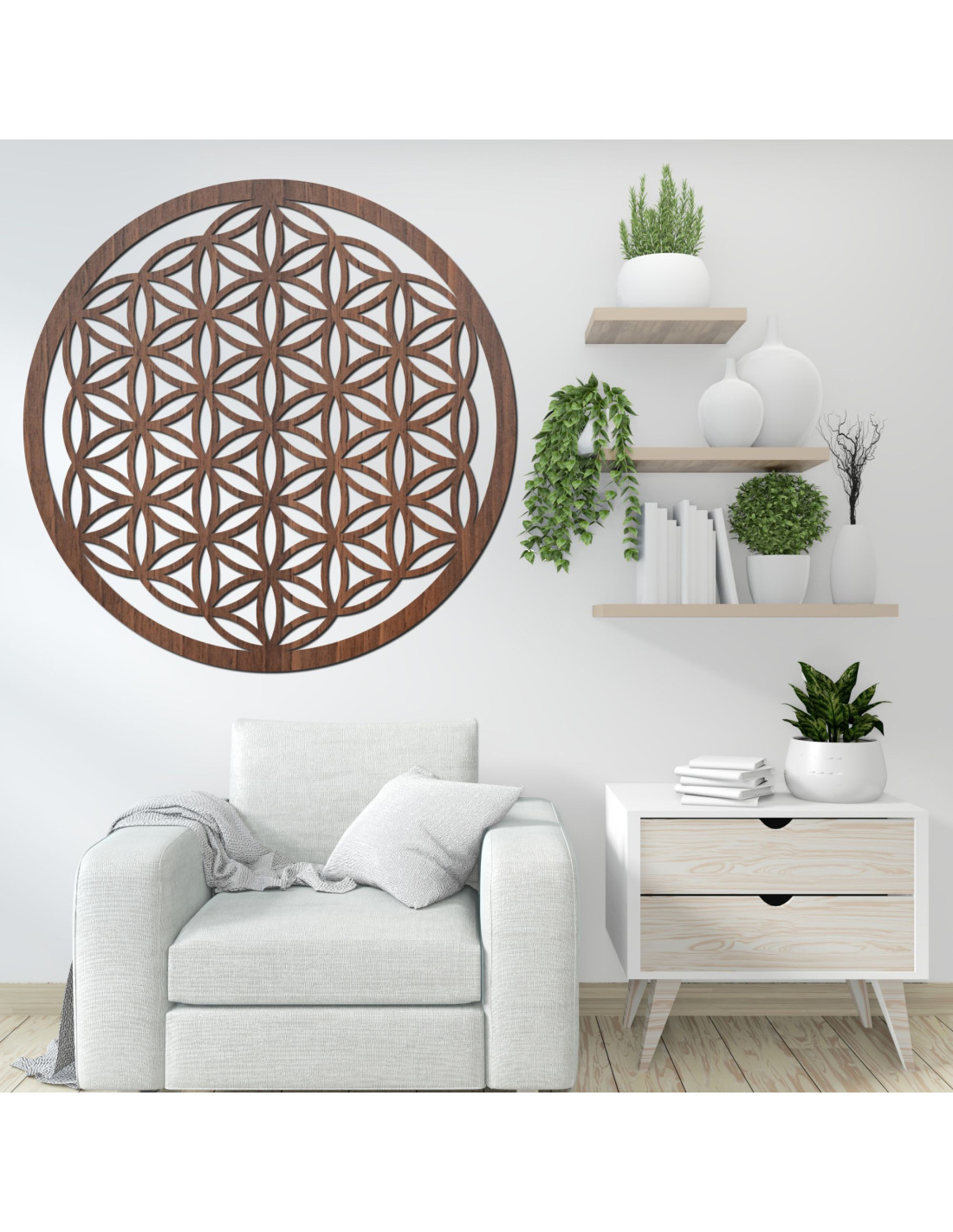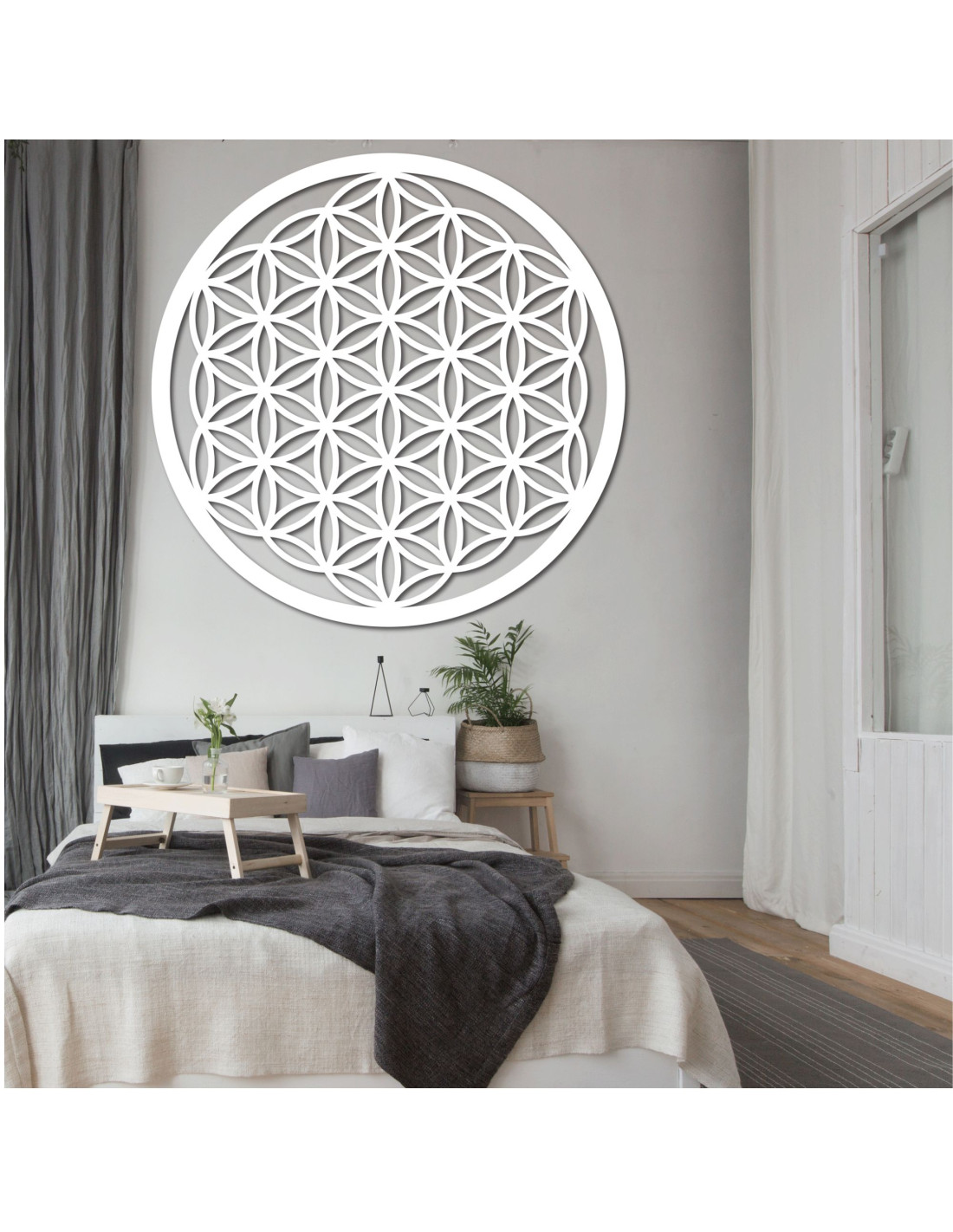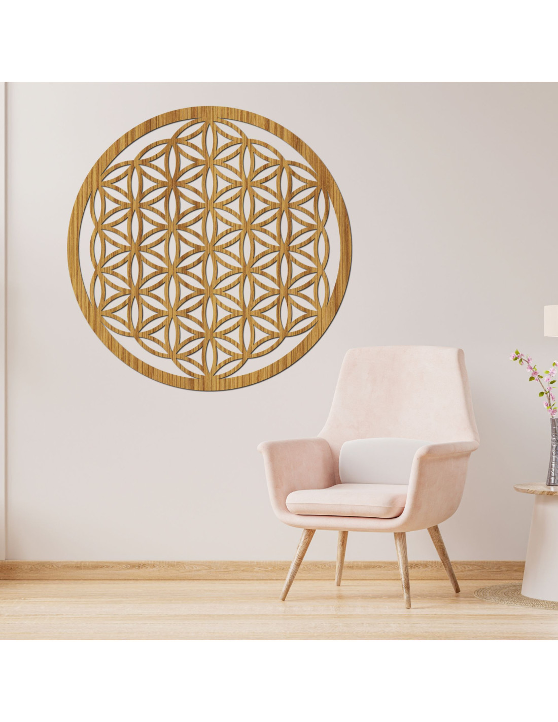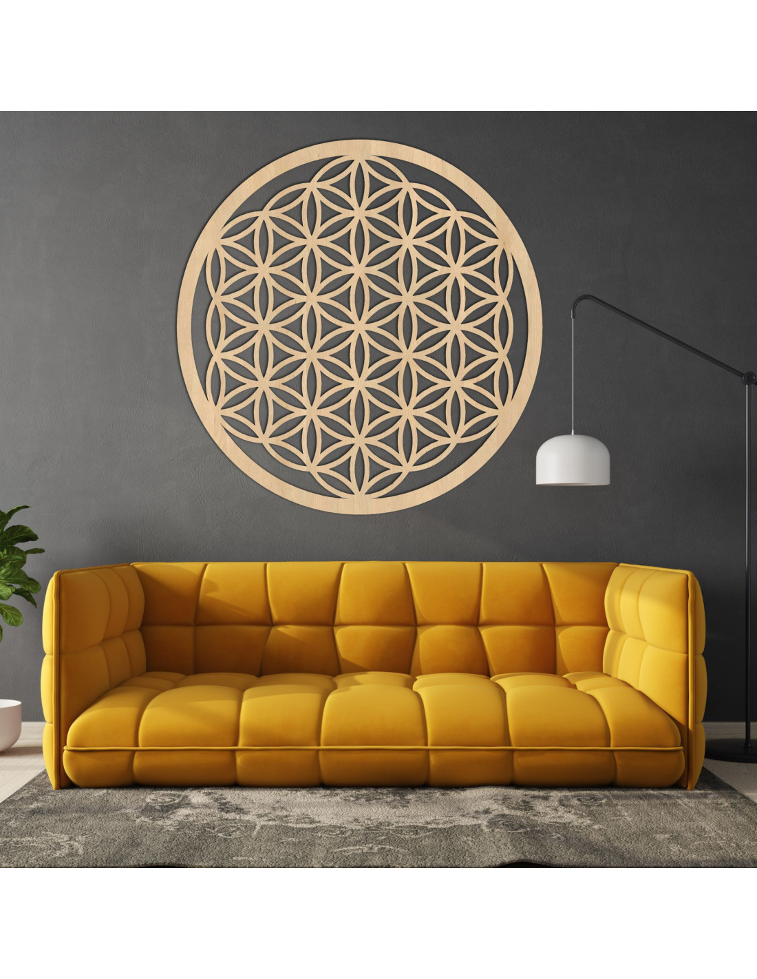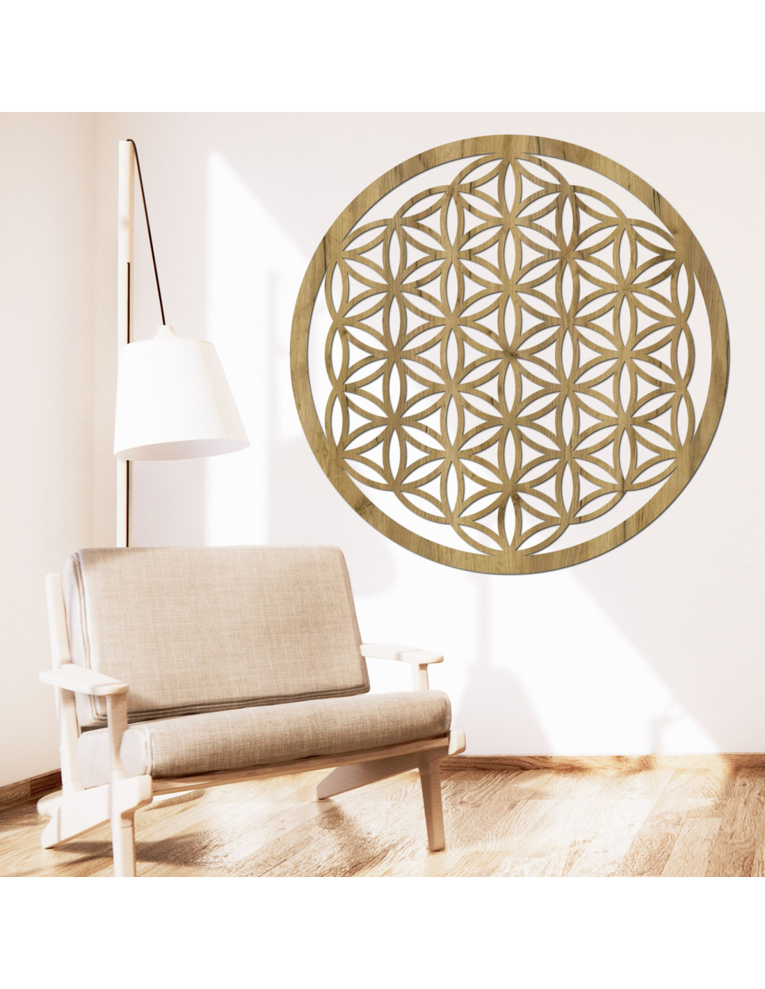 The design of this mandala is inspired by the ancient symbol of life , found in various cultures and representing the fundamental principles of the universe and life, and is believed to have the ability to improve the energy of a space and promote inner peace. The Flower of Life is a symbol that represents harmony, unity and the interconnectedness of everything that surrounds us .