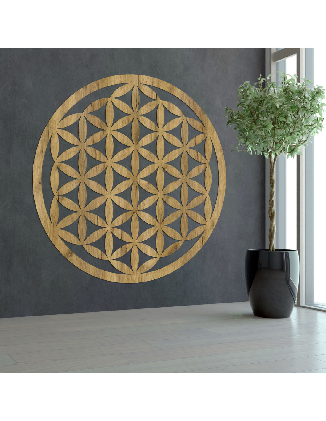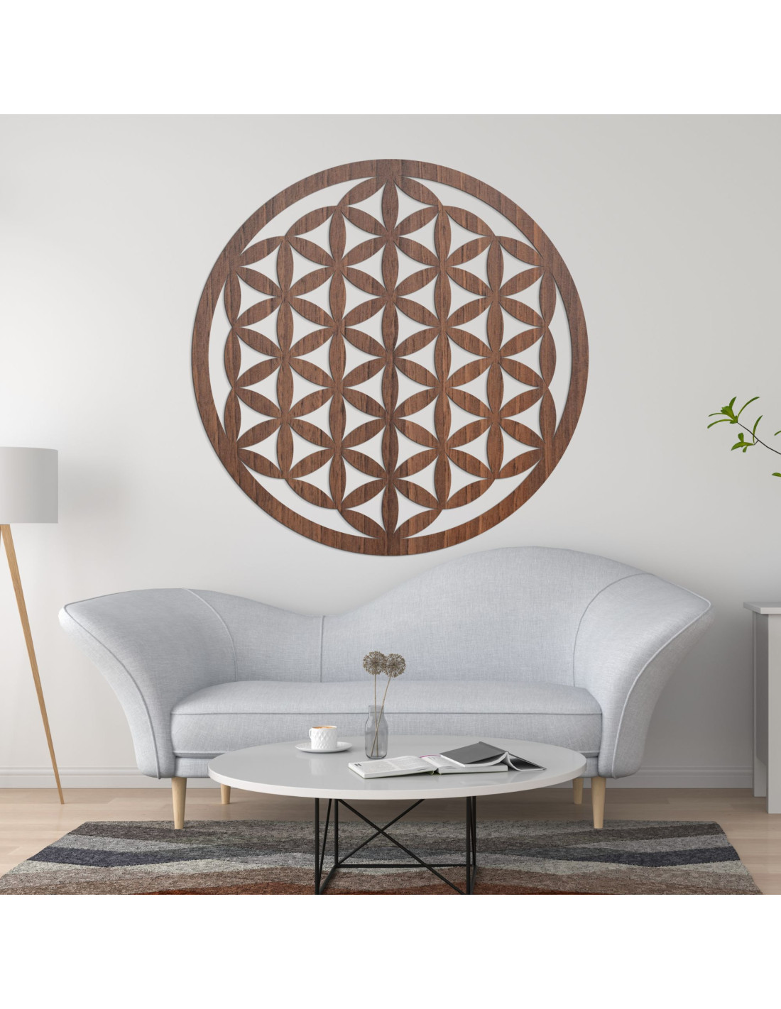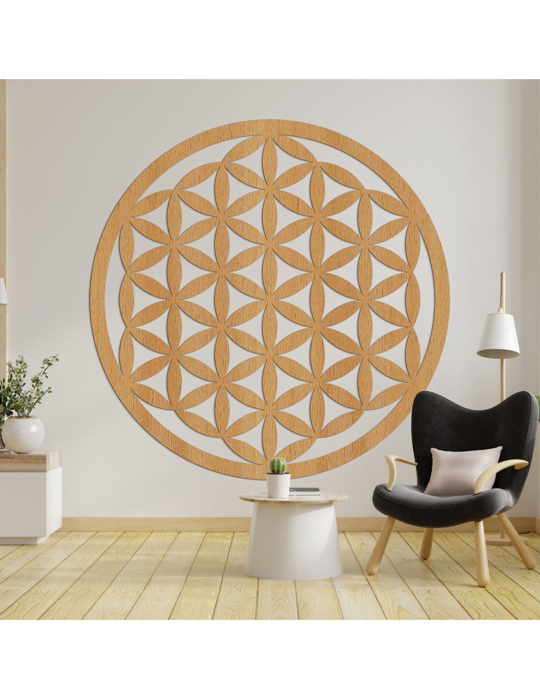 A wooden decoration with a flower of life motif will enliven your space with a symbol of unity, harmony, and endless energy.