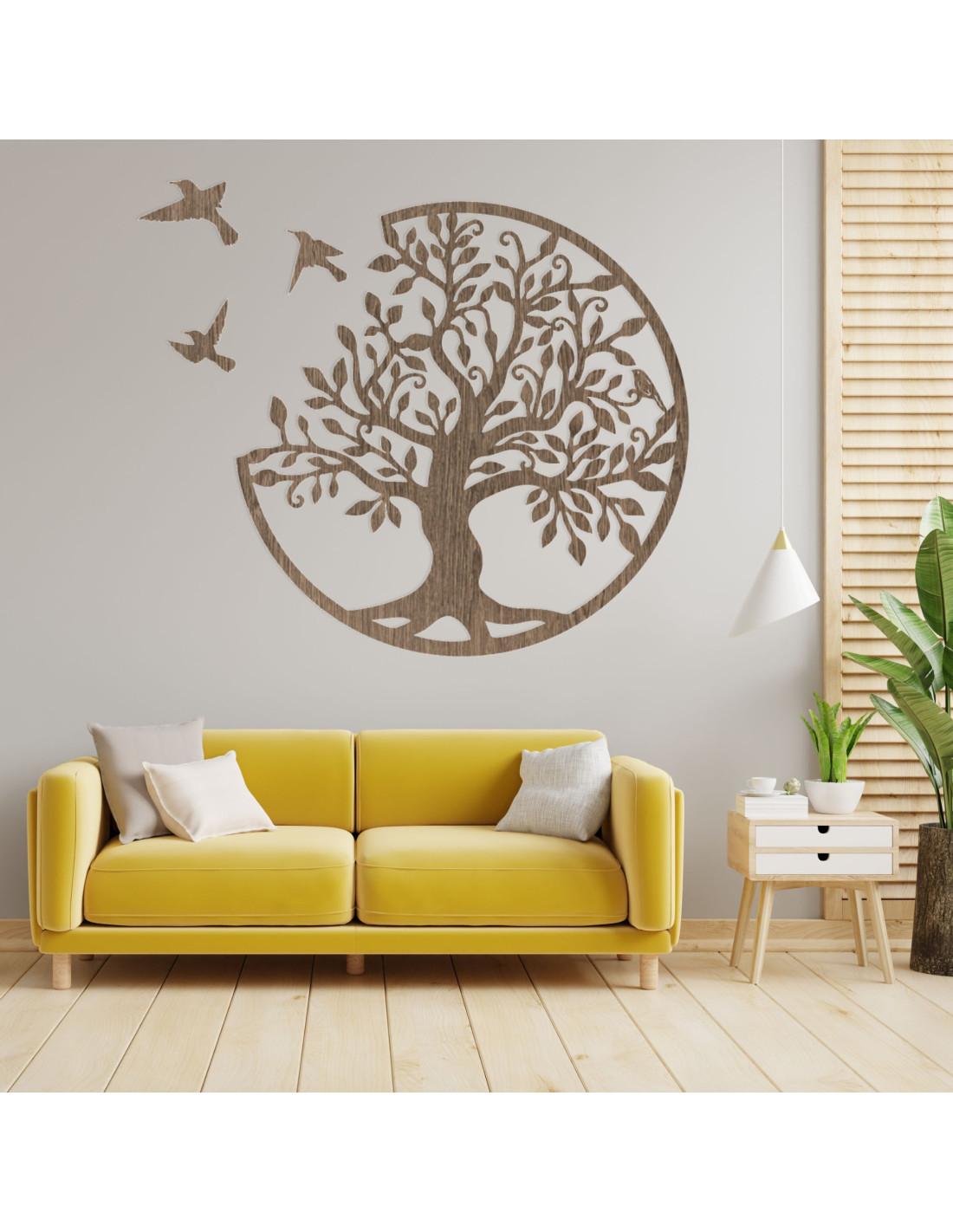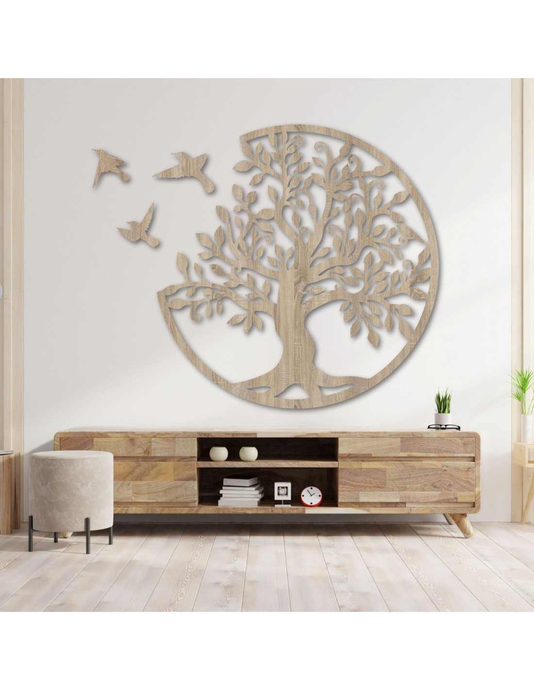 Wooden wall decoration Tree of Life with birds - a symbol of harmony, growth and peace
