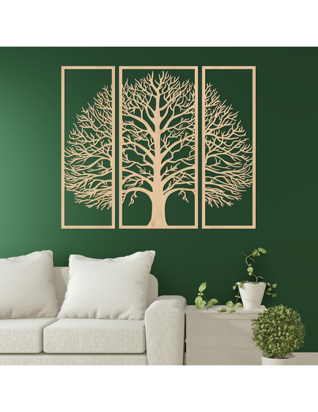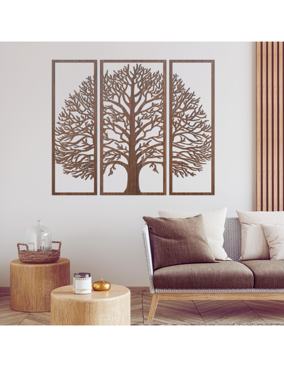 Tree of Life Wood Wall Art, 3-Panel Wooden Wall Decor - DIVISA
