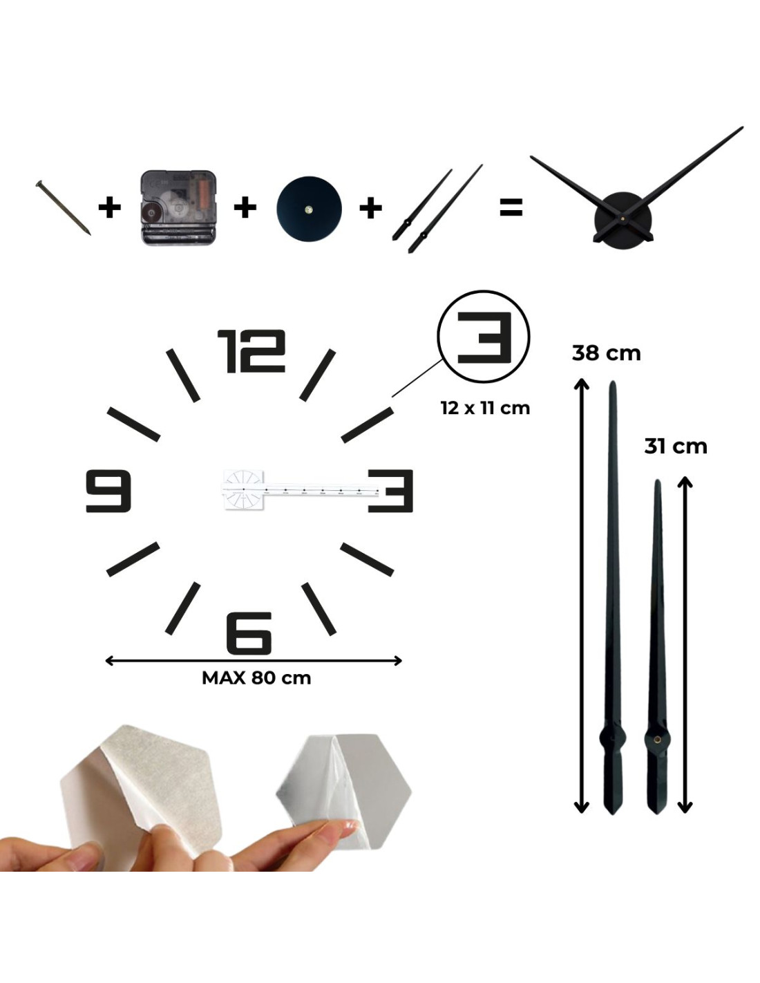 Large adhesive clock made of Italian plexiglass for a modern interior - style without drilling
