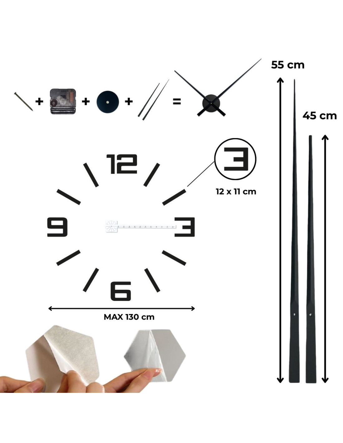 • Clock diameter 130 cm - longer hands made of the same material for more space.