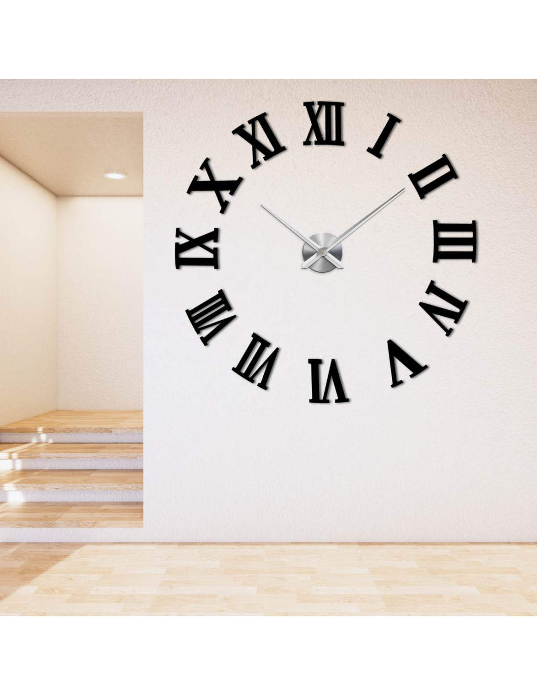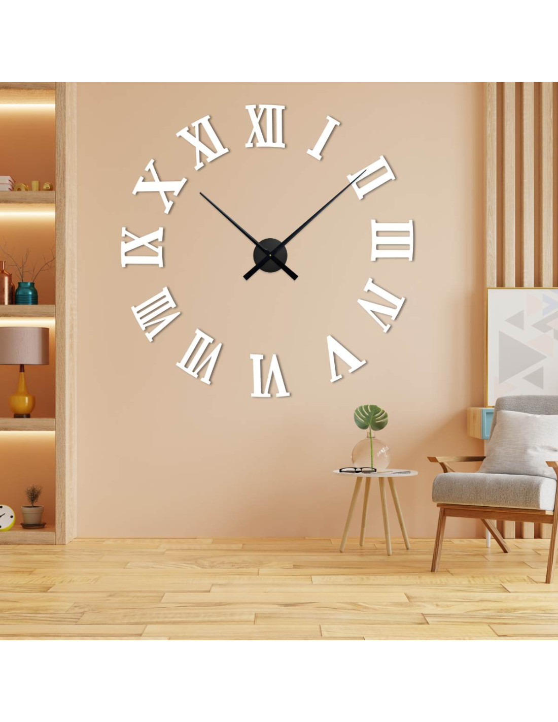 DIY adhesive Roman clocks made of plexiglass are a striking design accessory that will immediately attract attention and give your wall a modern and elegant look.