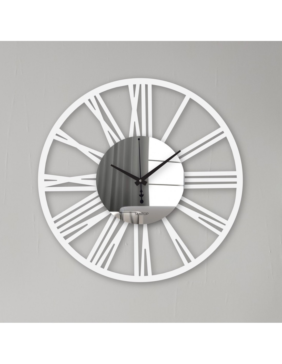 - Modern design - contrasting black Roman numerals and a mirrored center for a luxurious effect.