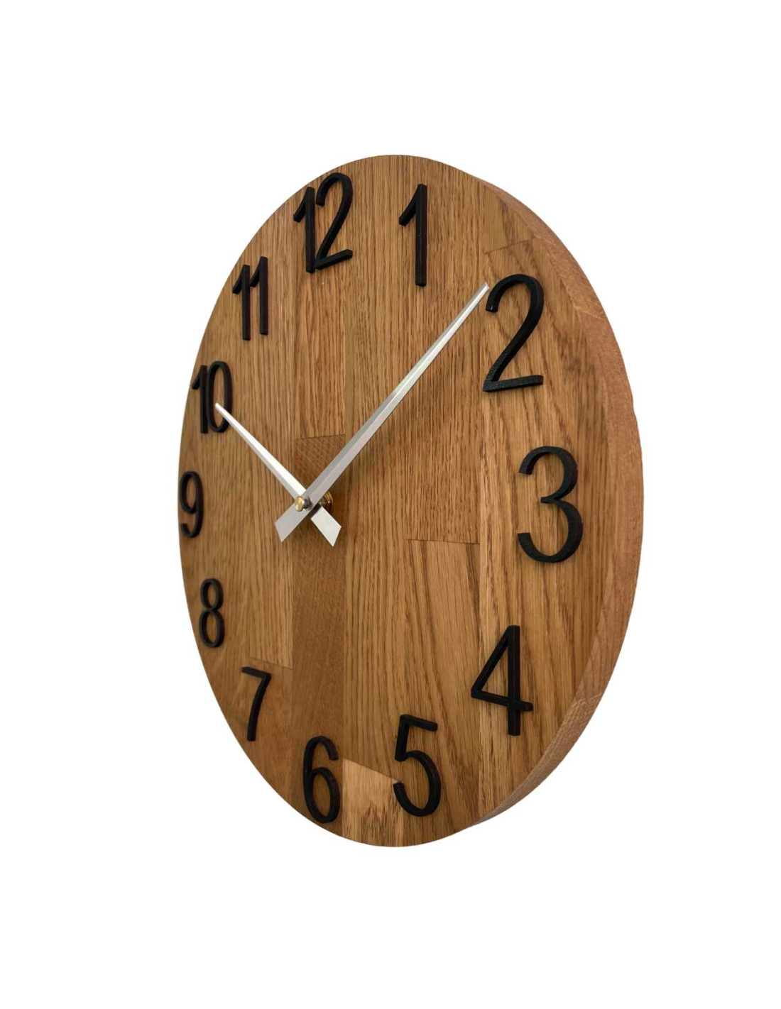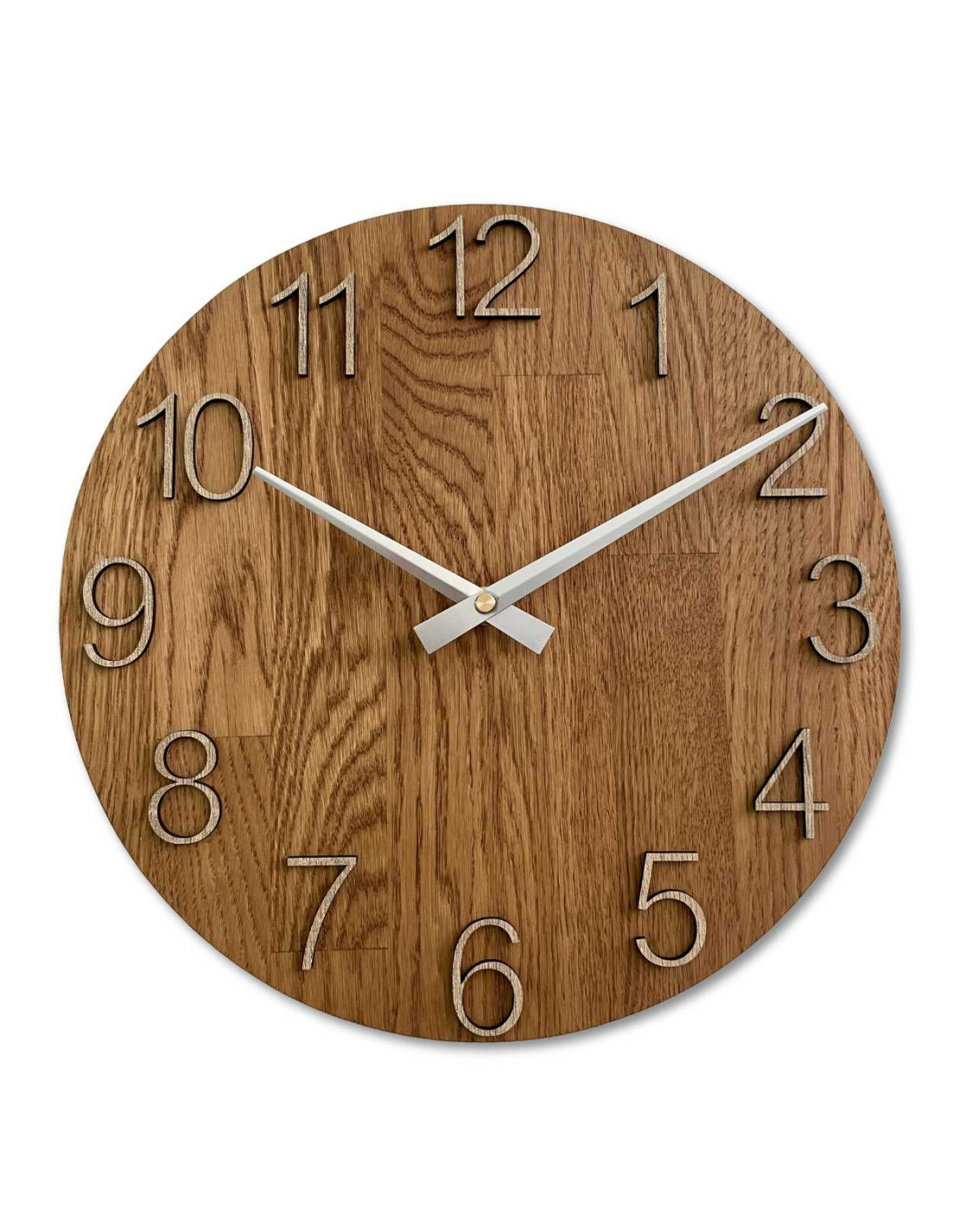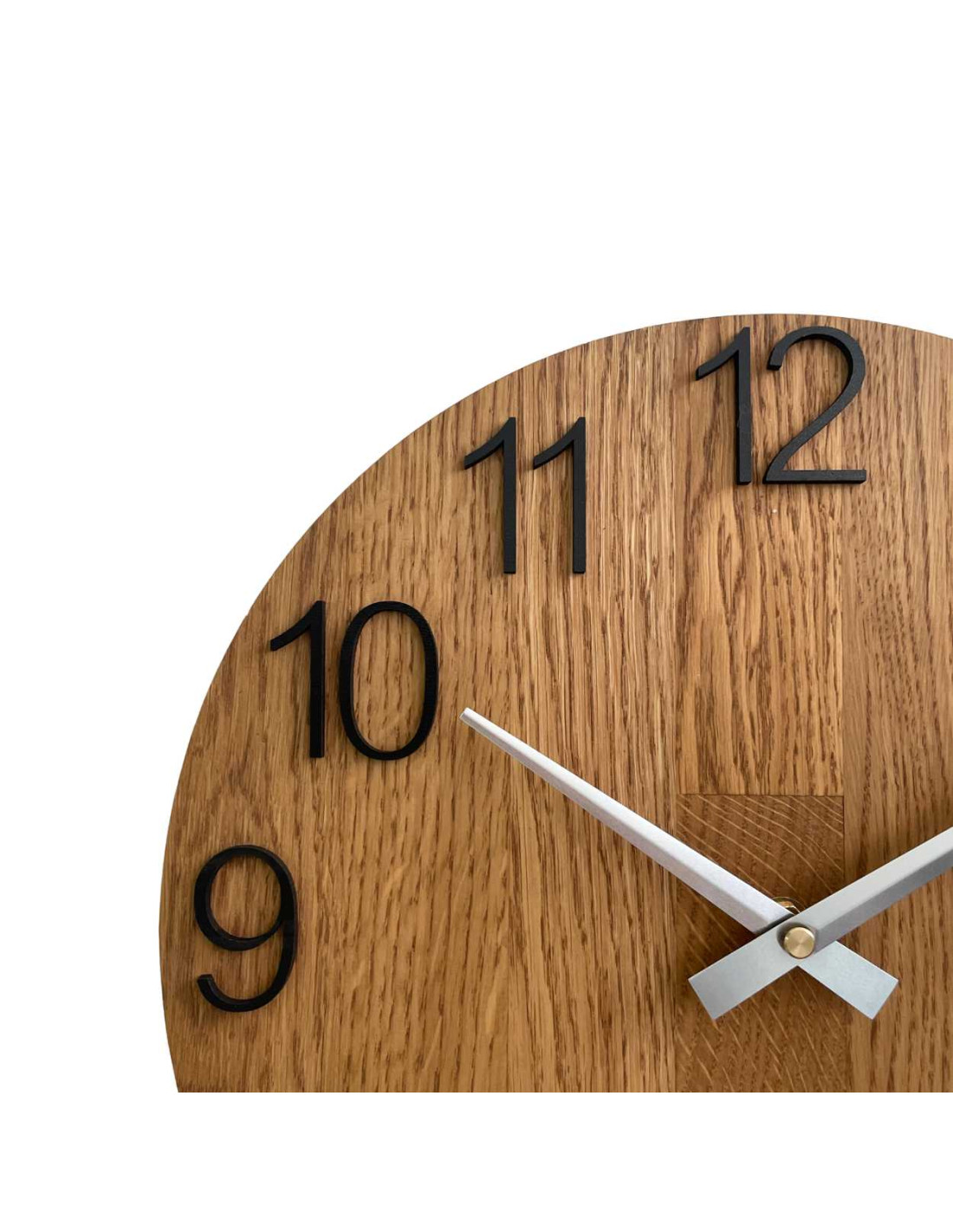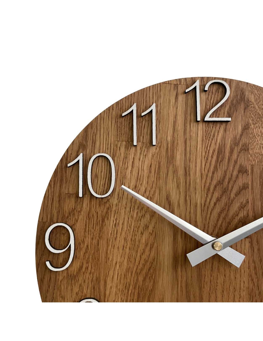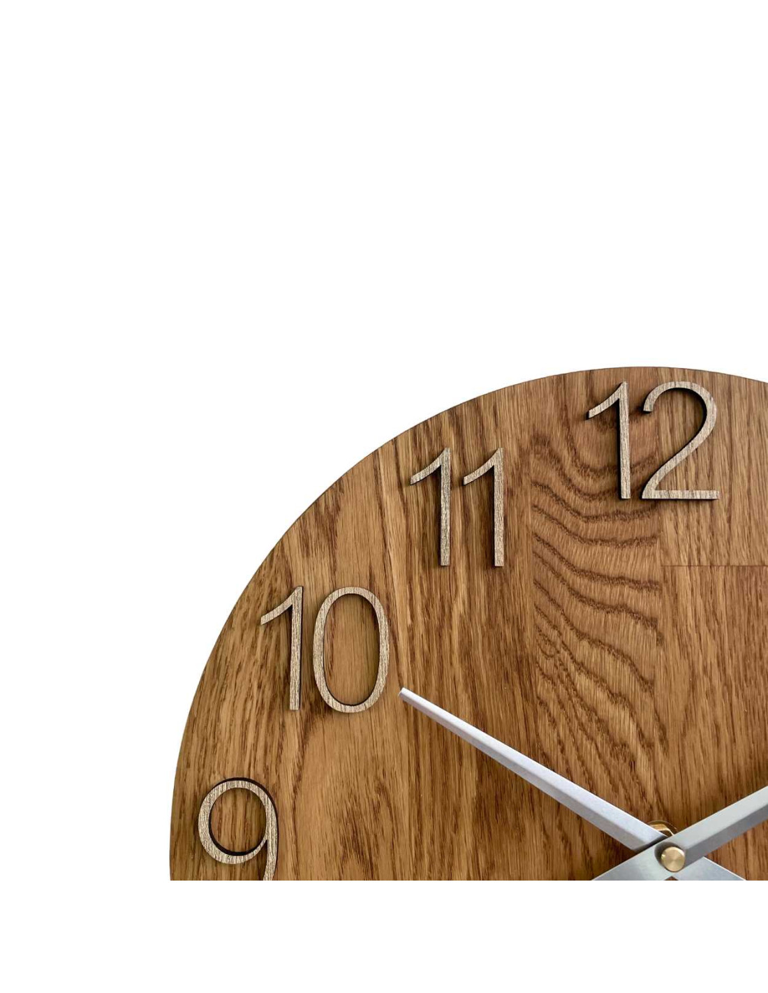 Each clock is made from solid oak panels, which are first precisely cut into the desired shape and size using CNC technology.