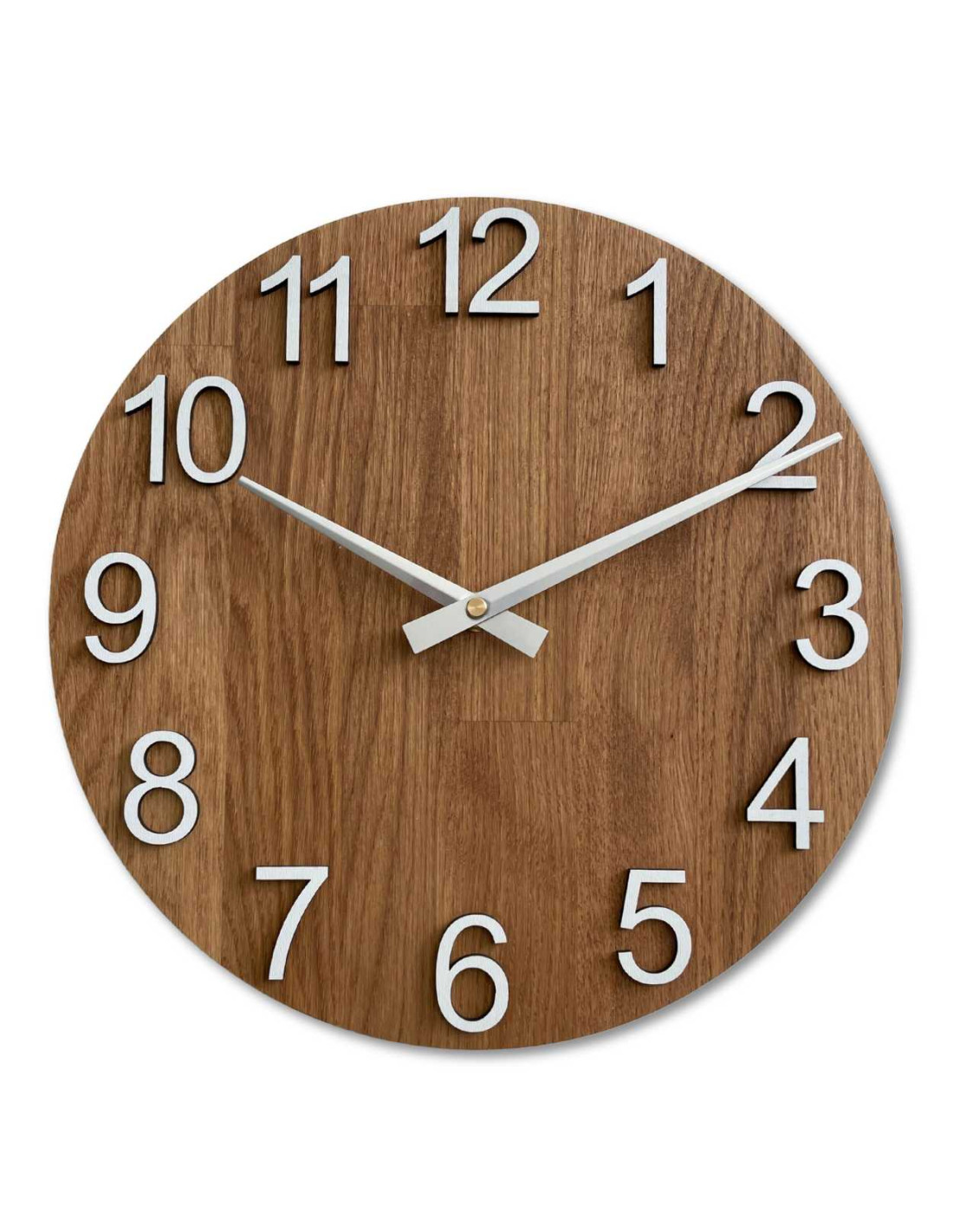 An elegant wall clock made of solid oak combines natural beauty with practicality.