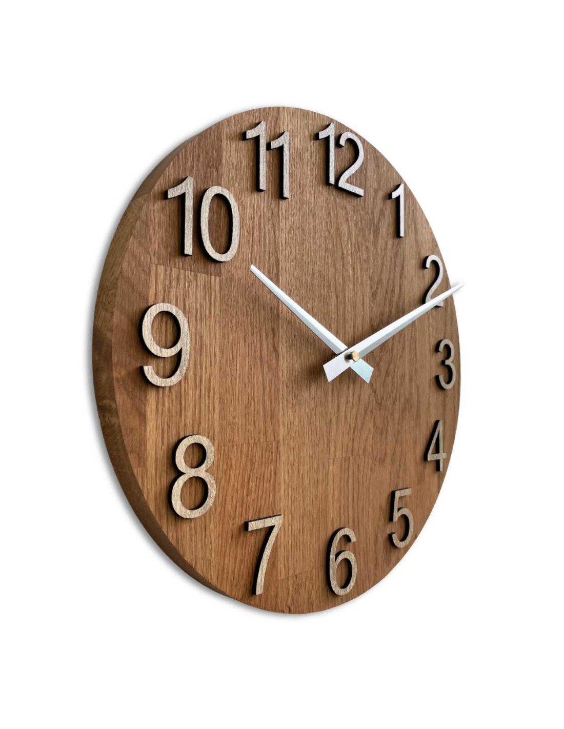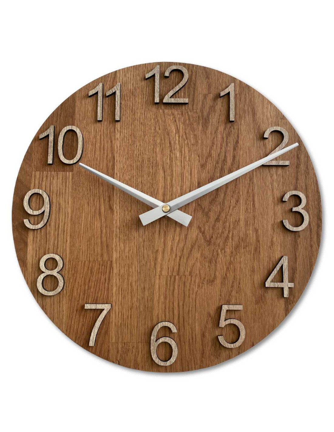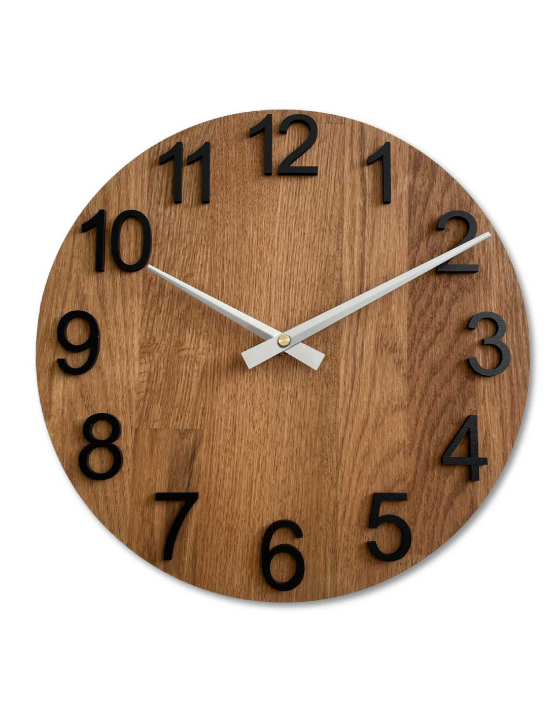 Each clock is made from solid oak panels, which are first precisely cut into the desired shape and size using CNC technology.