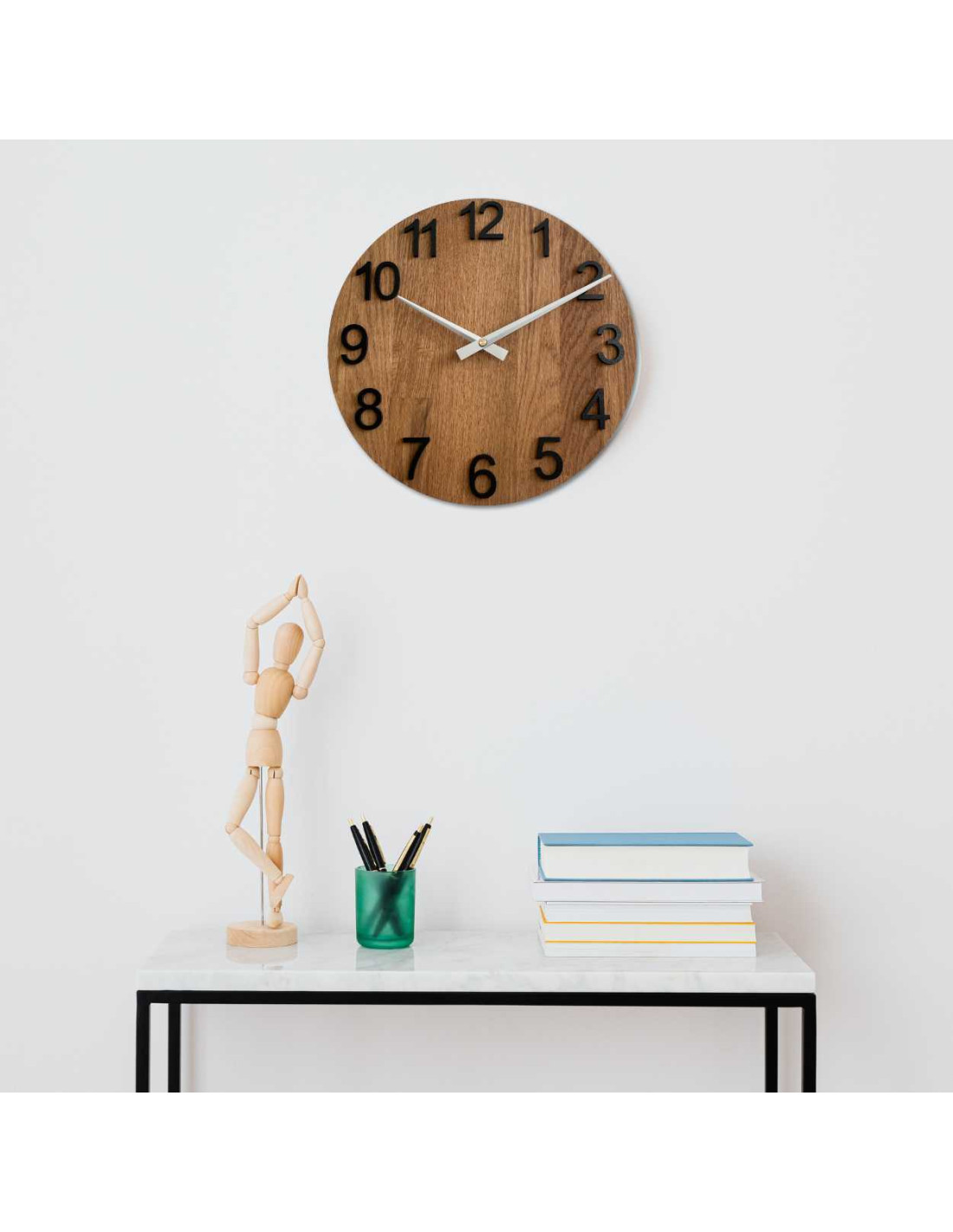 The natural wood grain and precise details make the clock a stylish addition to any interior.