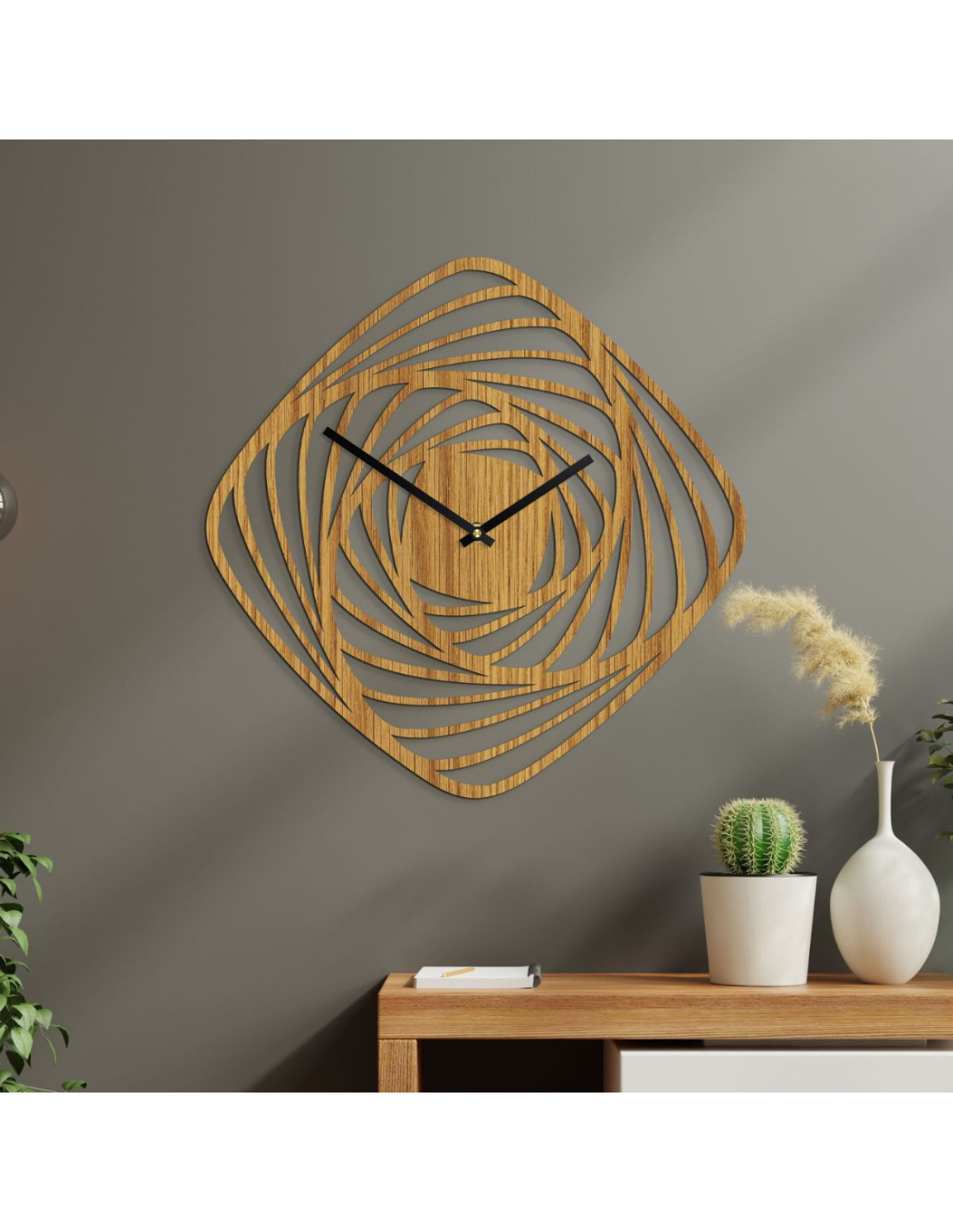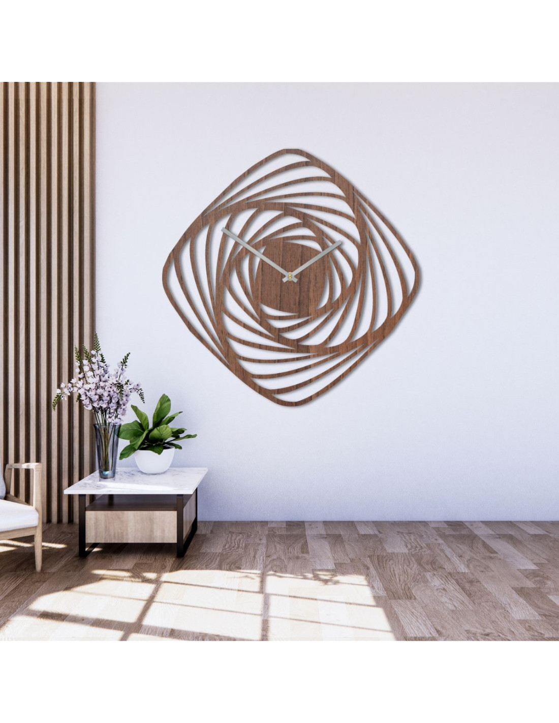 ➡️ Structure: Each clock is unique, as every piece of wood has a different texture, grain arrangement, and wood shade.