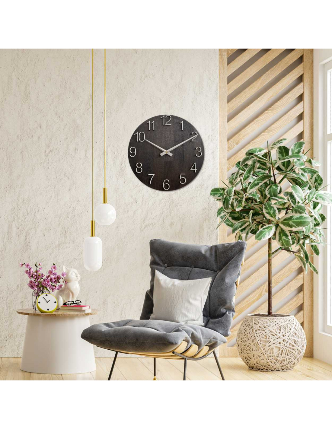 The clock is suitable for any space, from the living room to the kitchen to the office or cafe, where it creates a pleasant atmosphere without any noise.