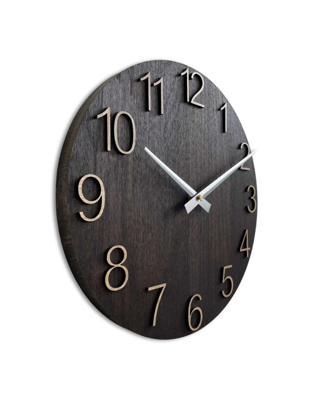 Each clock is made from solid oak panels, which are first precisely cut into the desired shape and size using CNC technology.