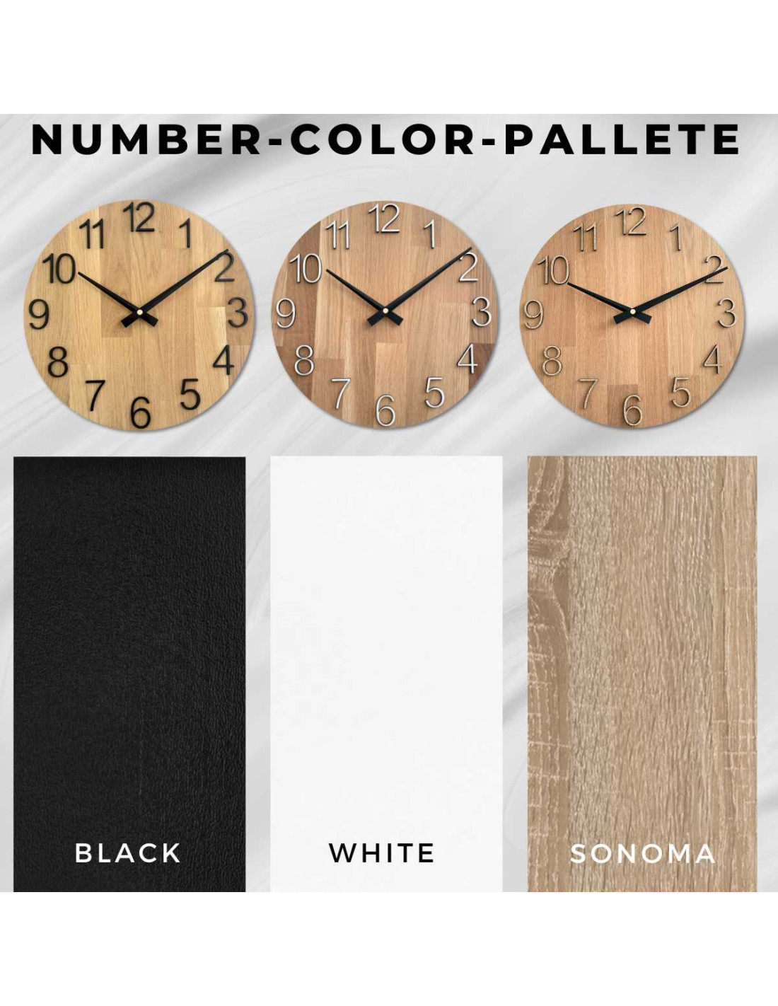 ➡️ Structure: Each clock is unique, as every piece of wood has a different texture, grain arrangement, and wood shade.