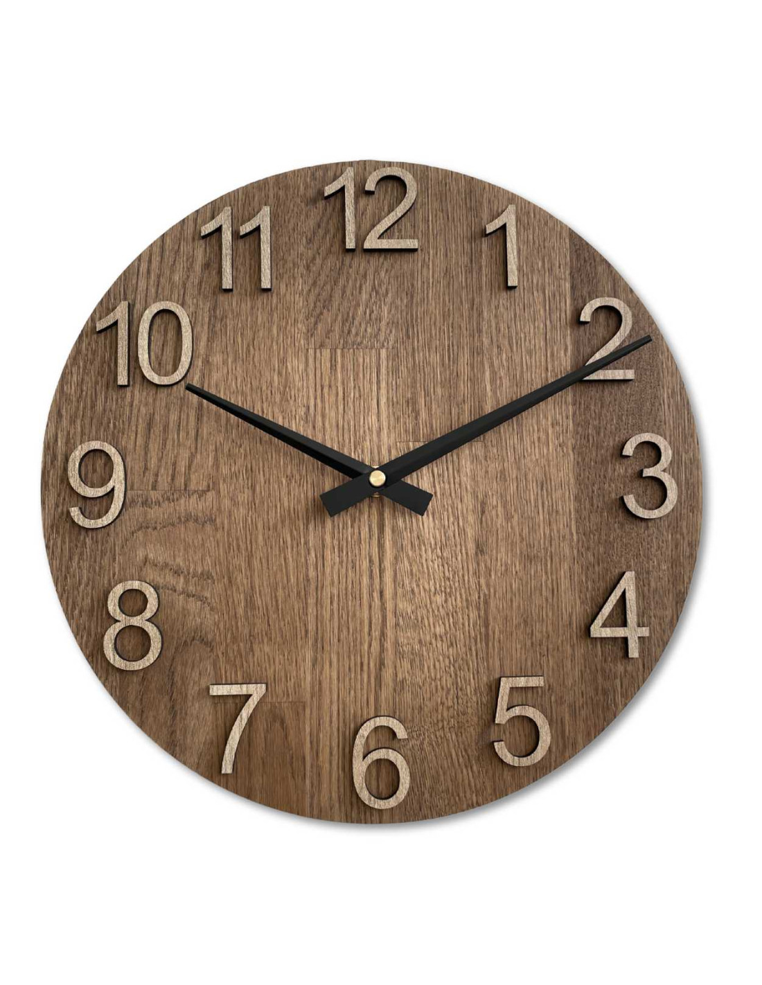 Each clock is made from solid oak panels, which are first precisely cut into the desired shape and size using CNC technology.