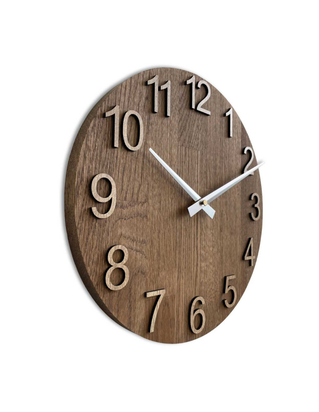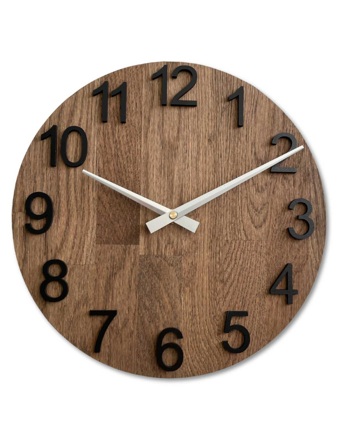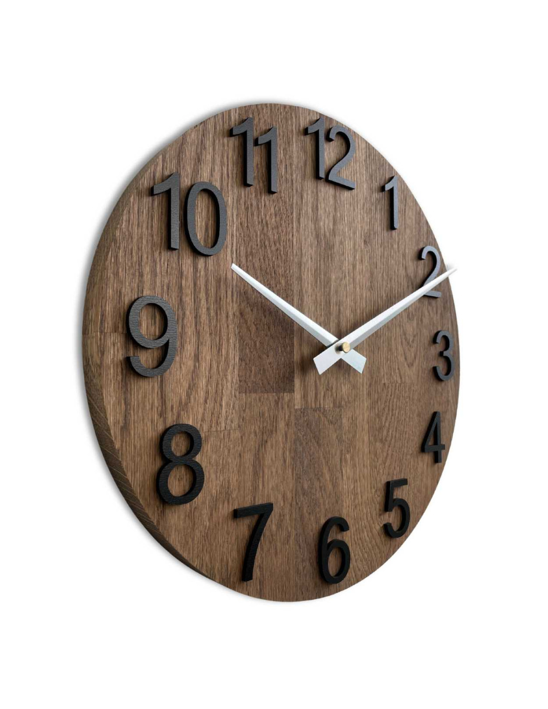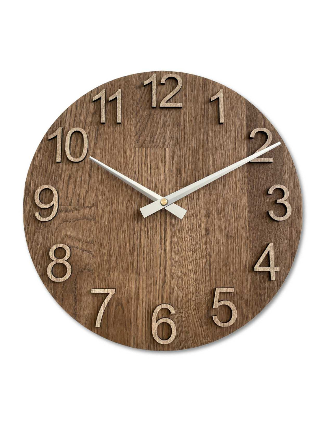Each clock is made from solid oak panels, which are first precisely cut into the desired shape and size using CNC technology.