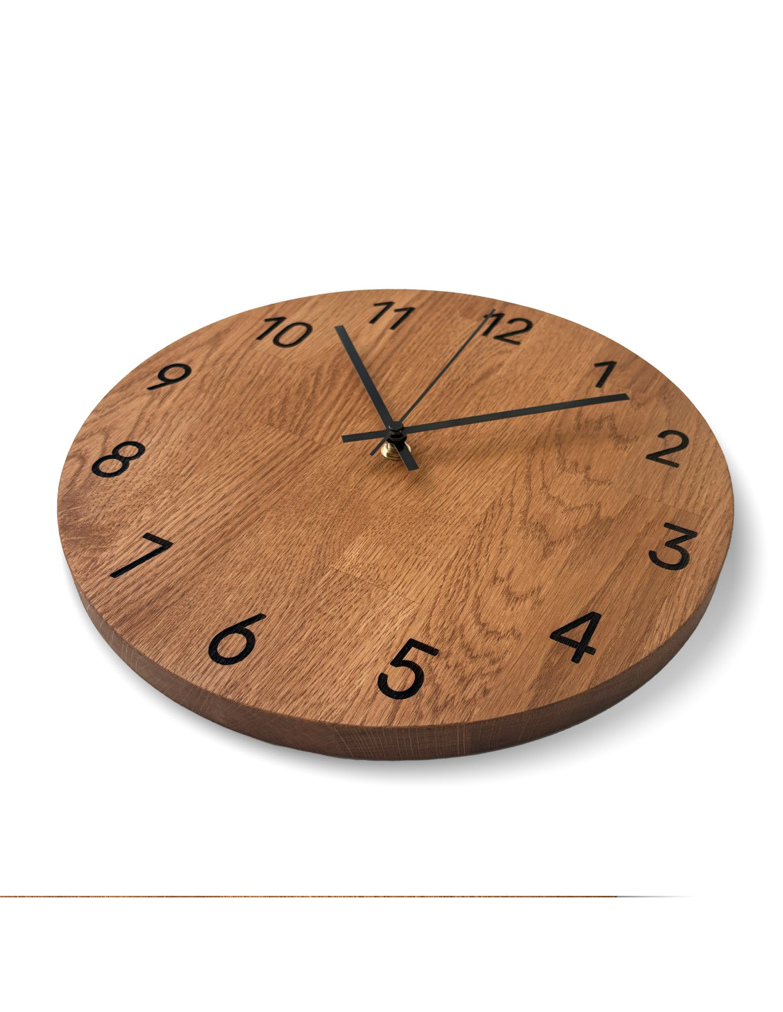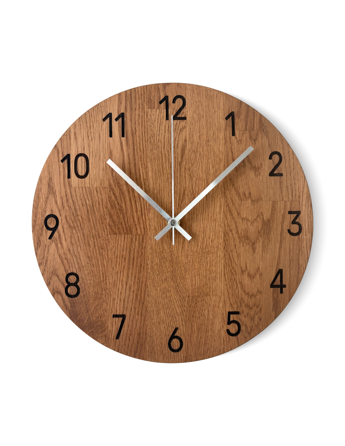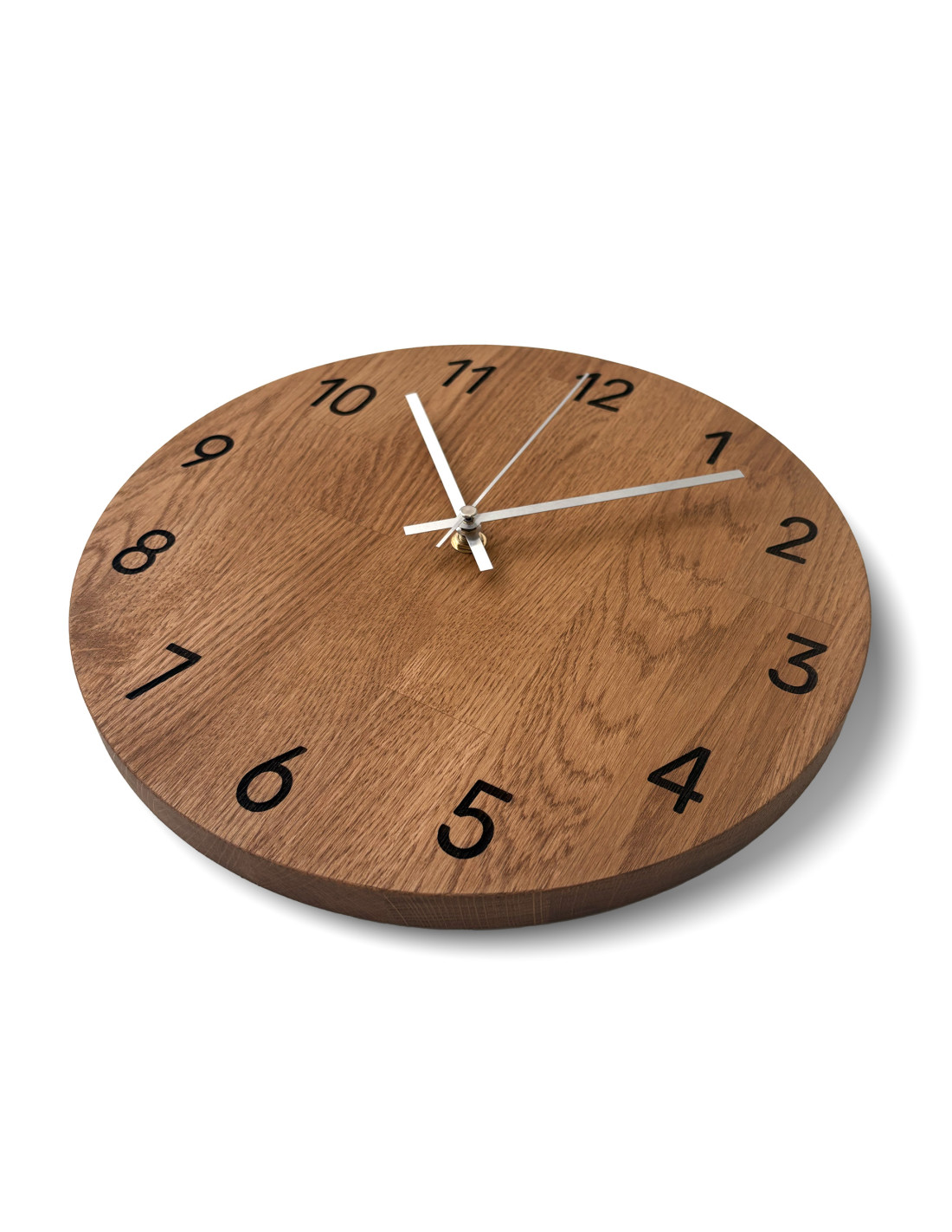 Each clock is made from solid oak panels, which are first precisely cut into the desired shape and size using CNC technology.
